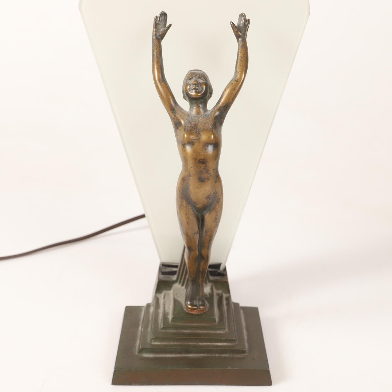 4380808. BORDLAMPE, bronze med glasplade, Art Deco.