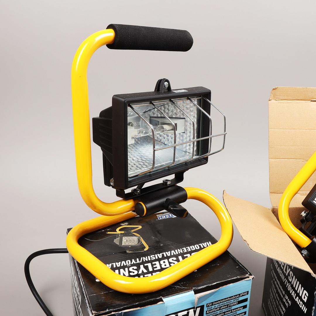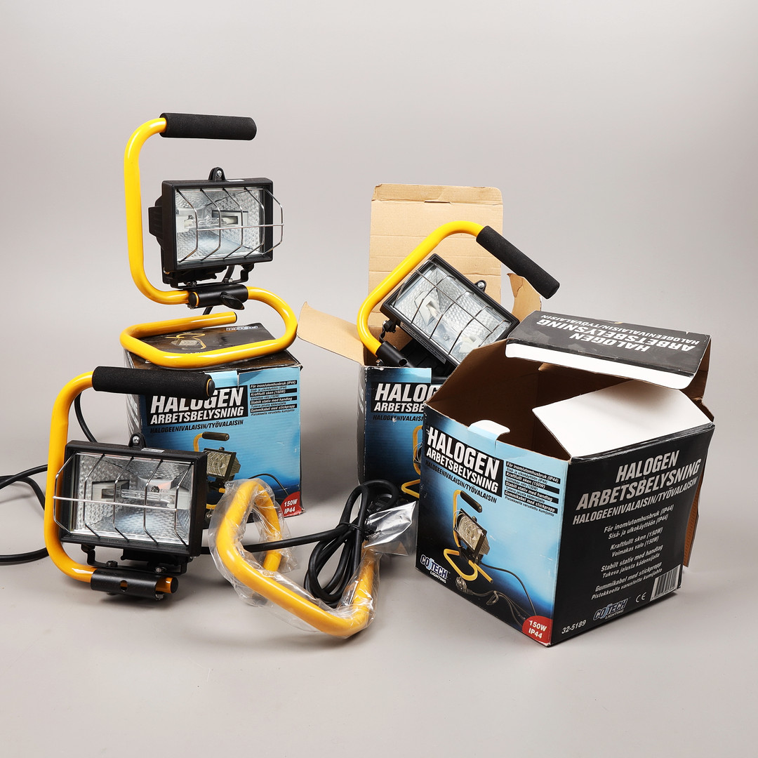 4380809. BYGGELAMPER, 3 stk, halogen arbejdslamper, COTECH, 21. århundrede.