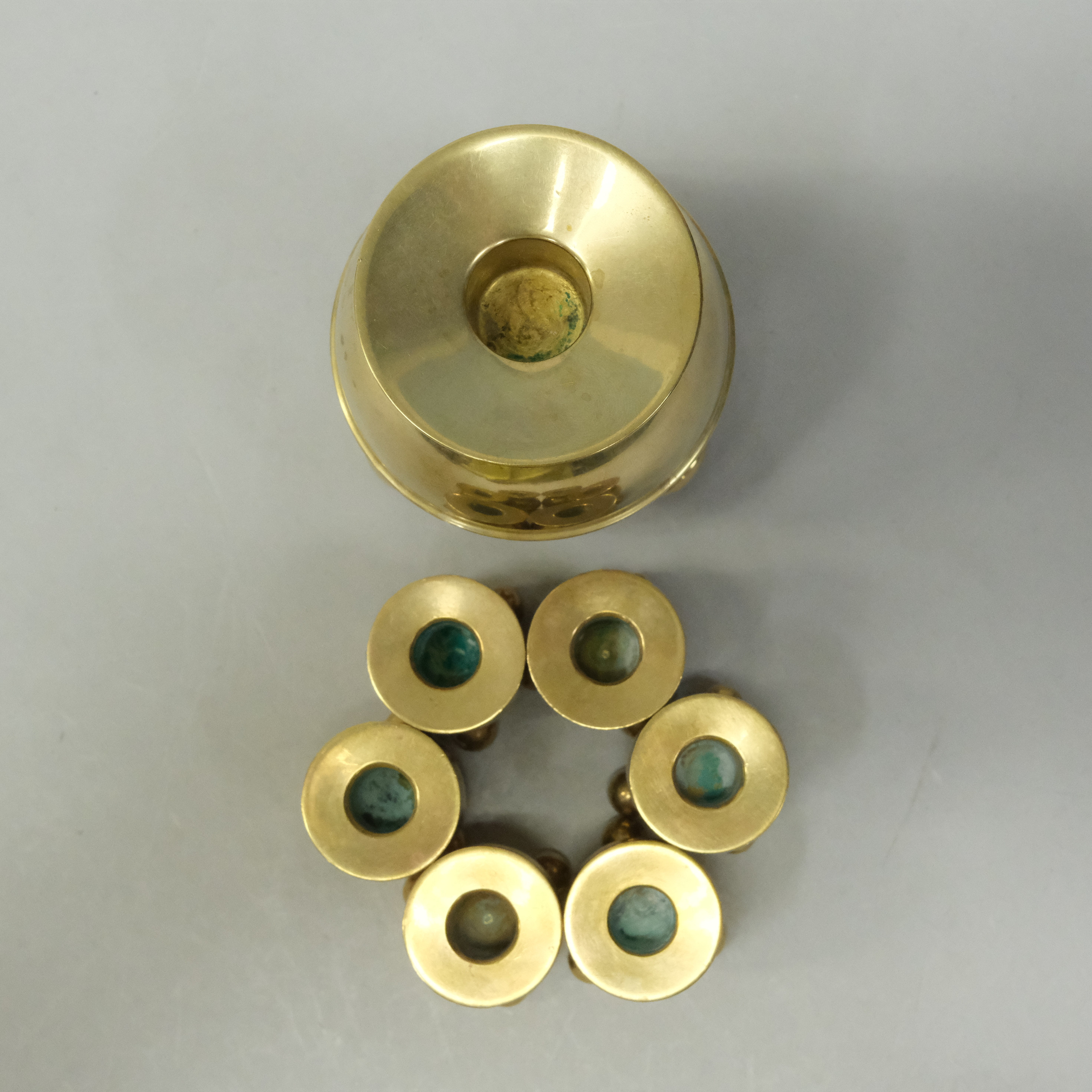 4381108. SYV LYSESTAGER, MESSING, KUGLEMODEL.