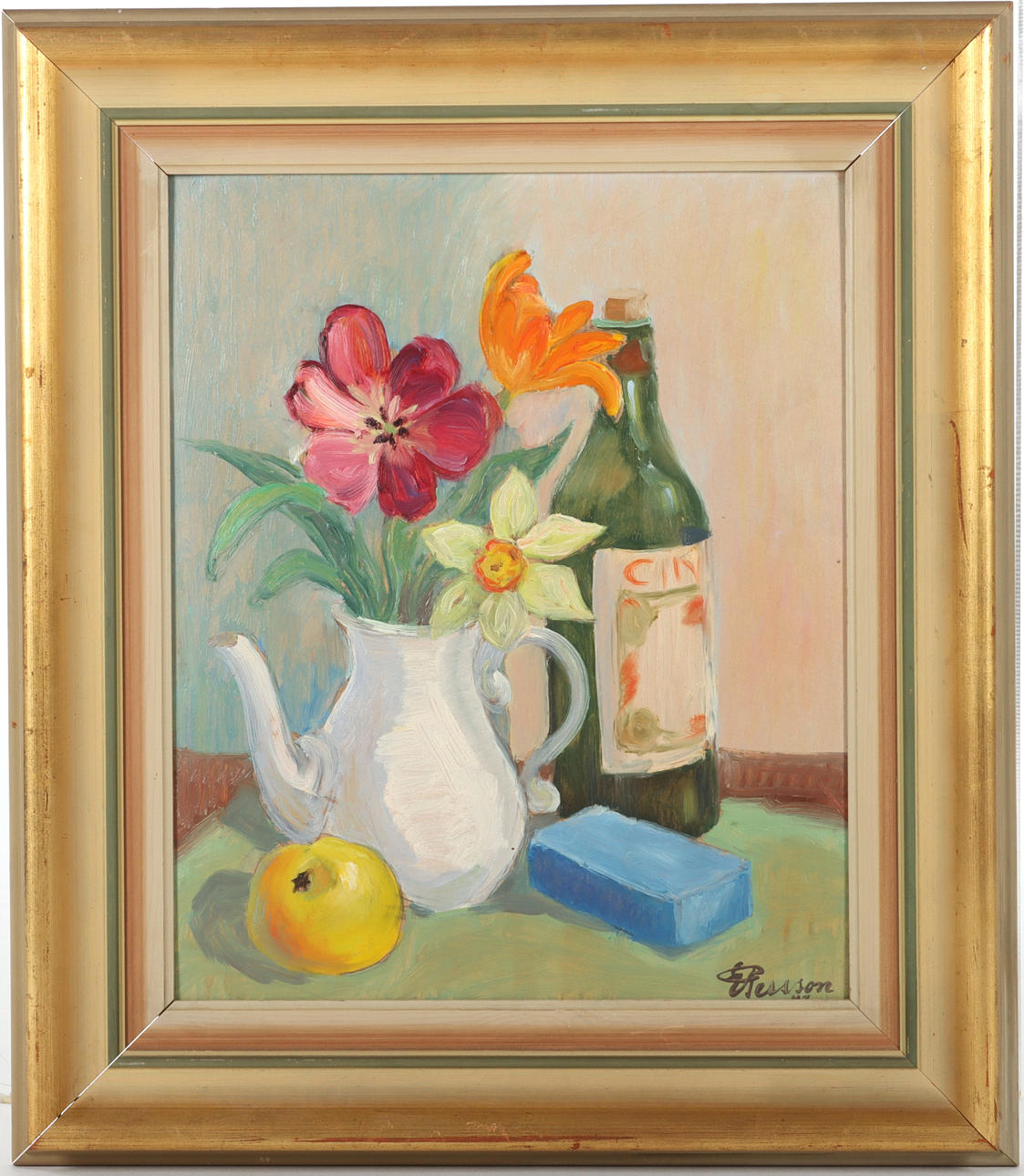 4381718. ERIK PERSSON. Blomsterstilleben, olie på panel, 1947.