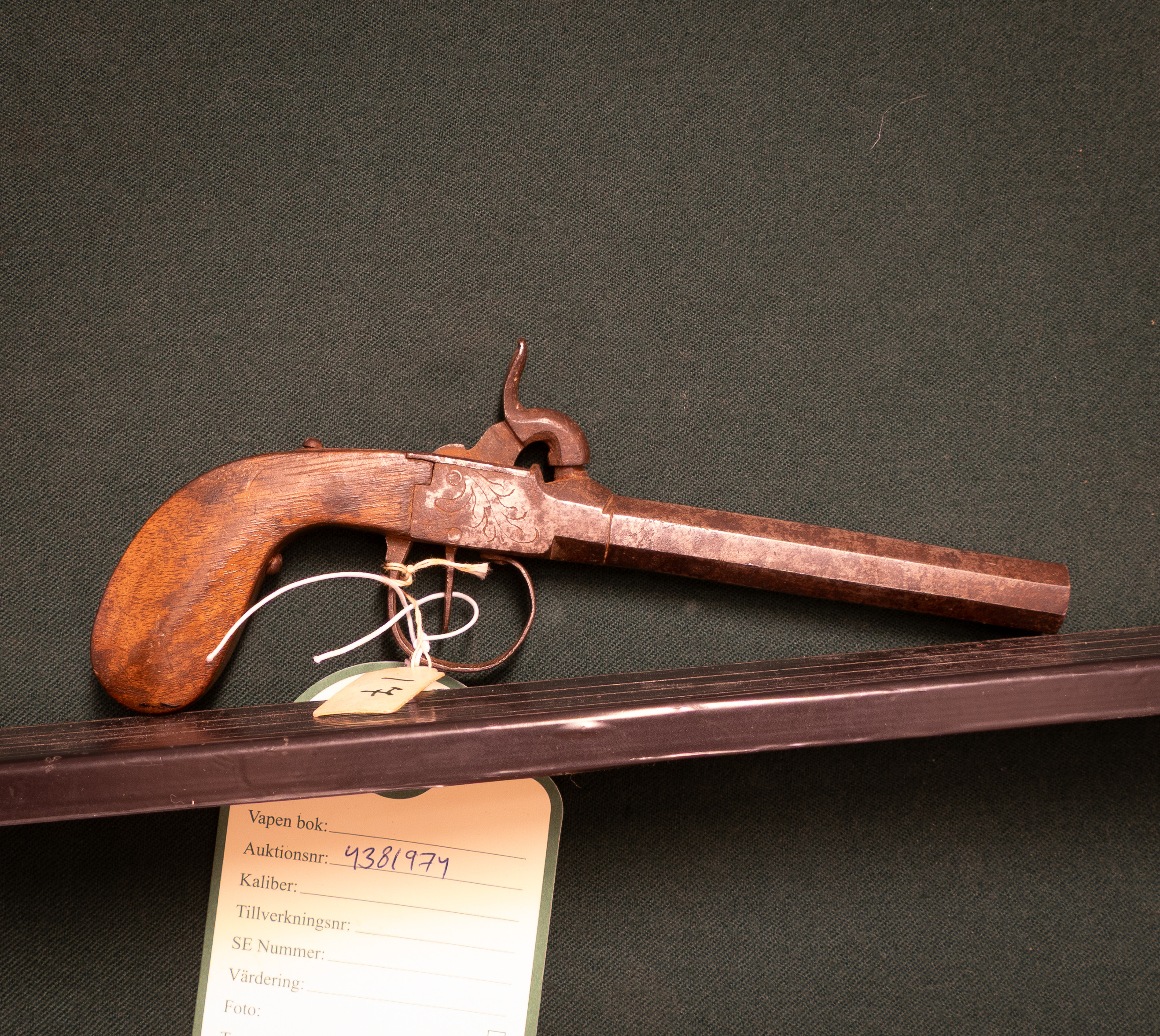 4381974. Pistol, belgisk, enkeltskud.