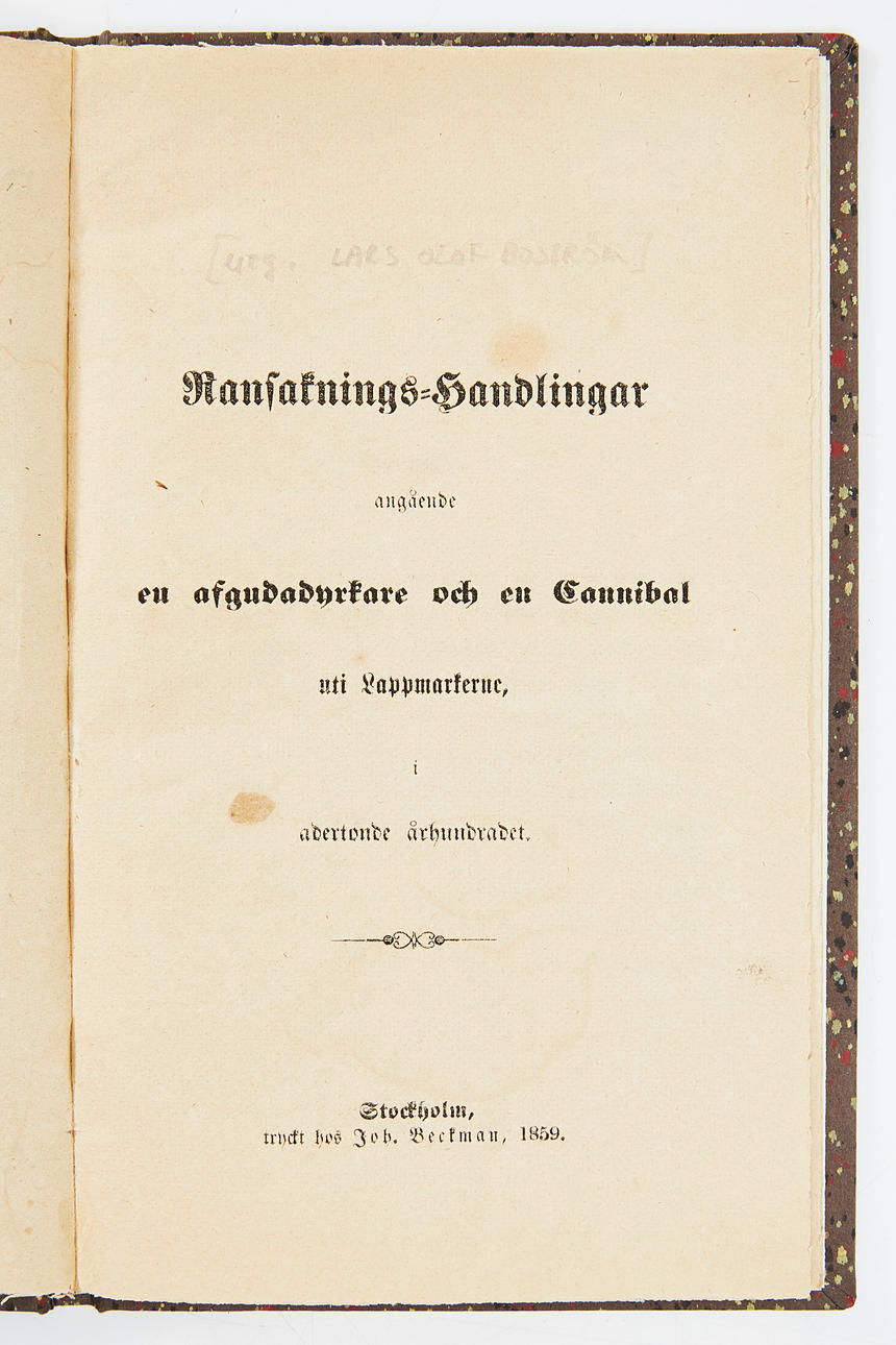 Søg i dokumenter om en afgudsdyrker og en kannibal i Lappmarkerne i det attende århundrede, Stockholm 1859.