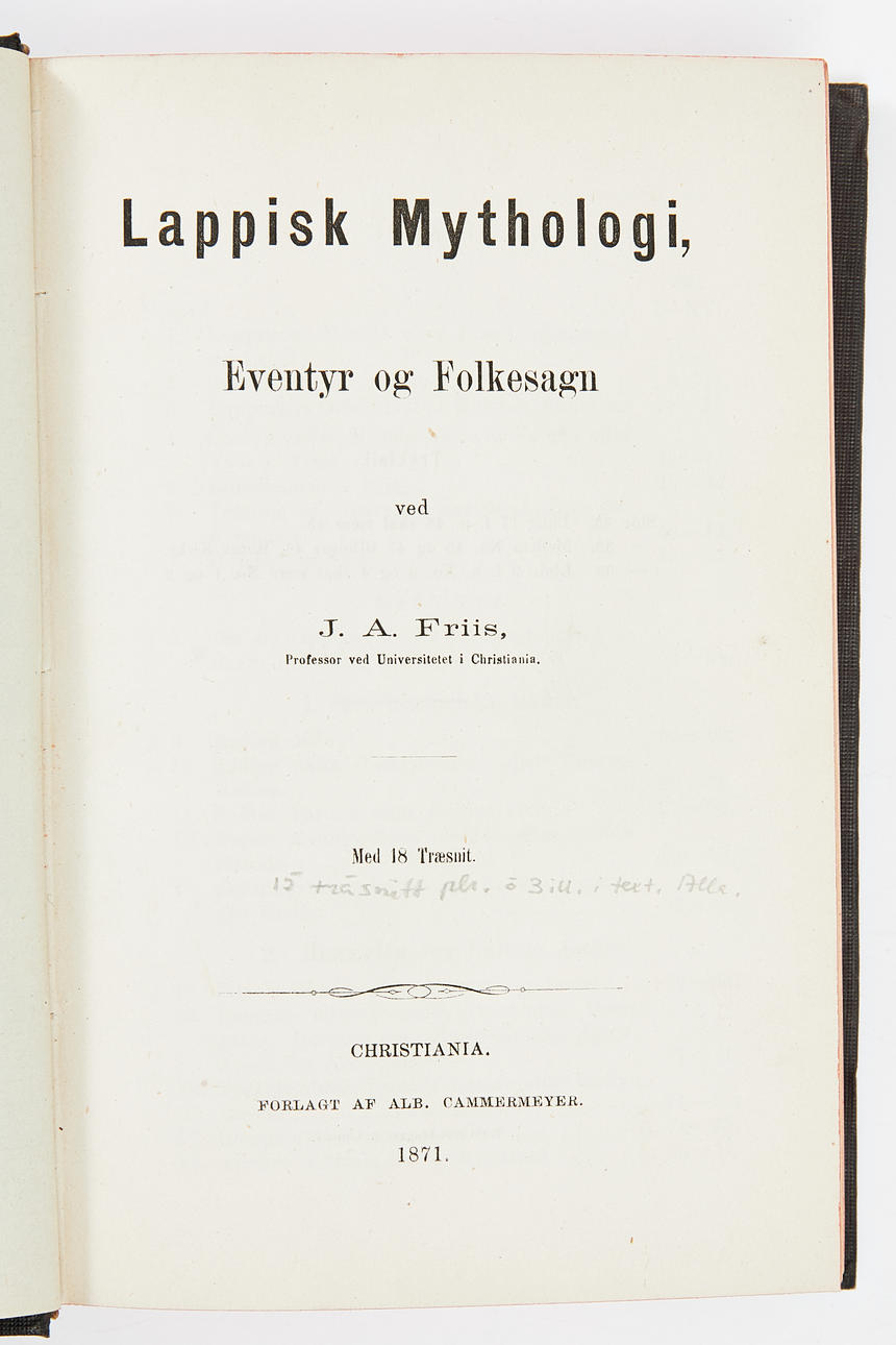 FRIIS, J. A. Lappisk mytologi, eventyr og folkeeventyr... med 18 tracesnits. Christiania i 1871.