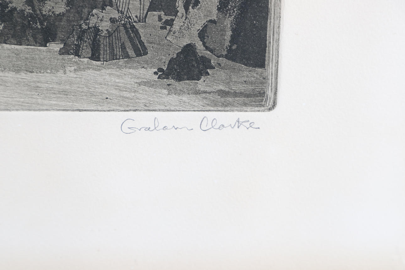Ætsning med akvatint, signeret, titel og nummereret 135/150, formet plade