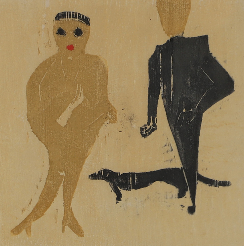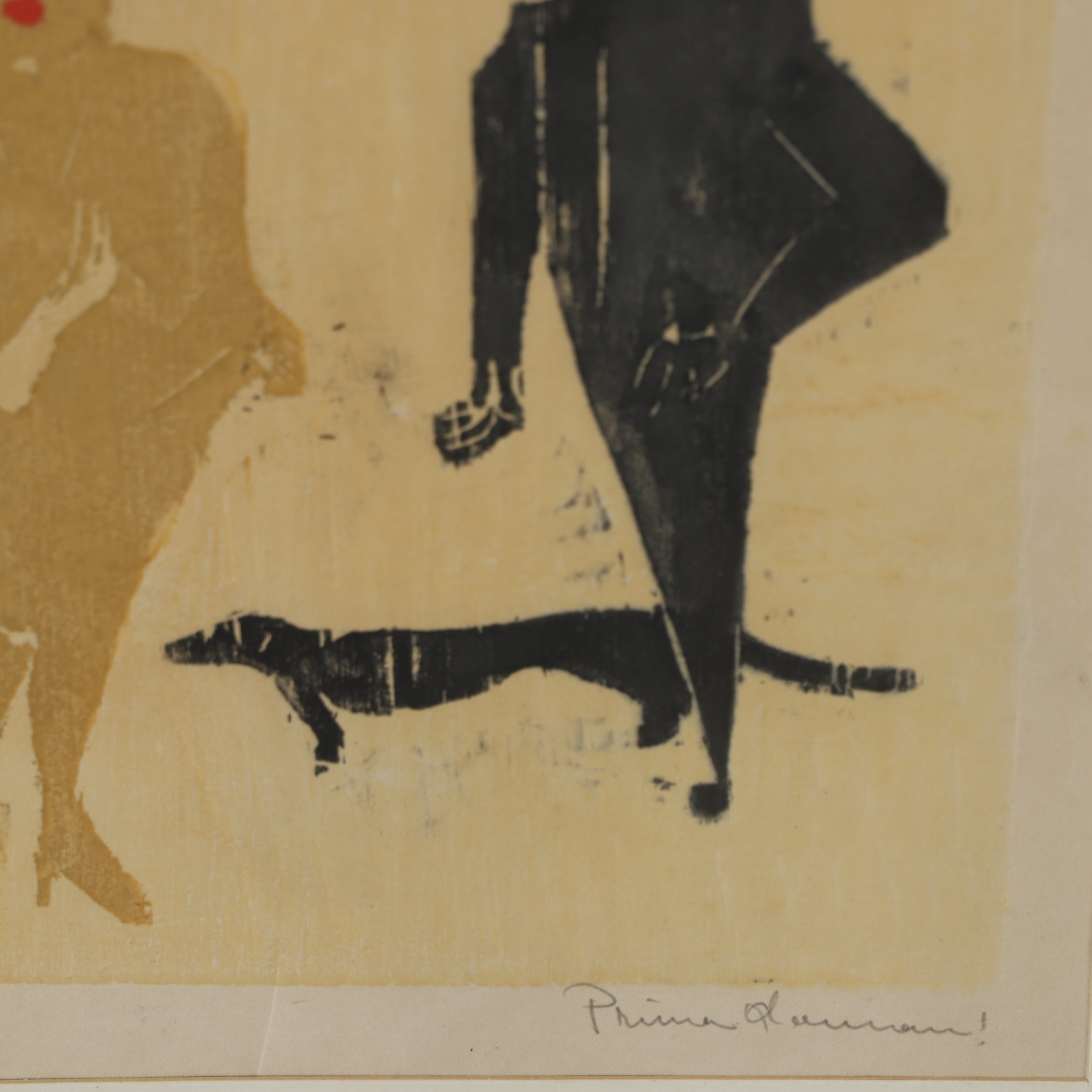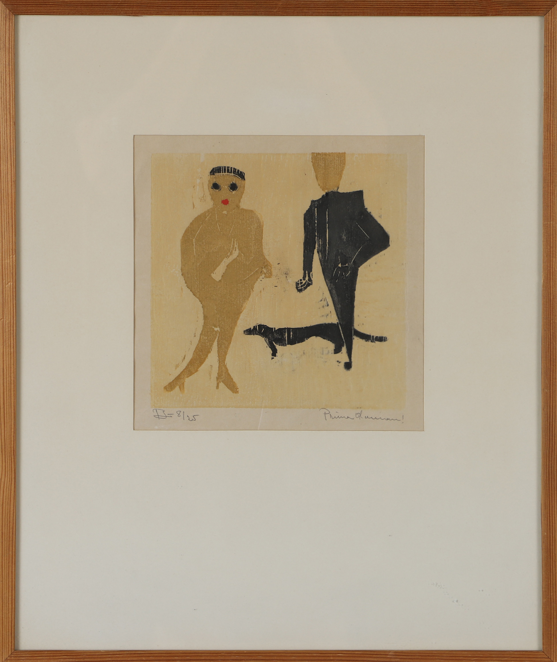 4383119. OIDENTIFIERAD KONSTNÄR. Kvinde, træsnit, monogram signeret.