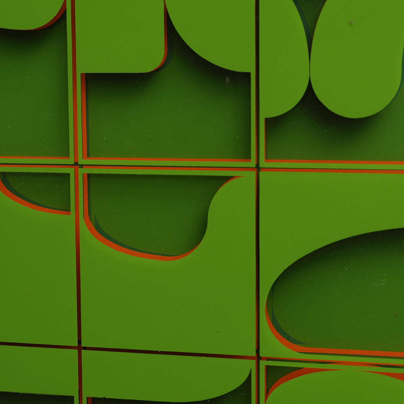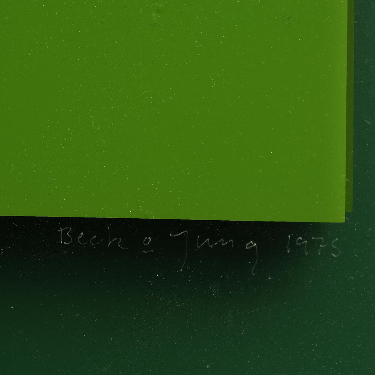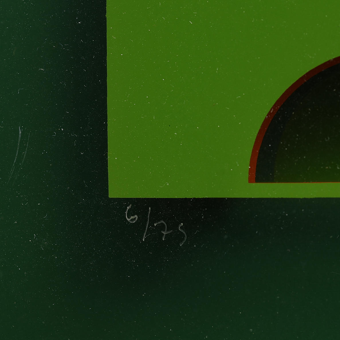 Signeret og nummereret 6/75, dateret 1975, ca. 48x48 cm. Dimensioner på rammen ca. 49x49 cm.