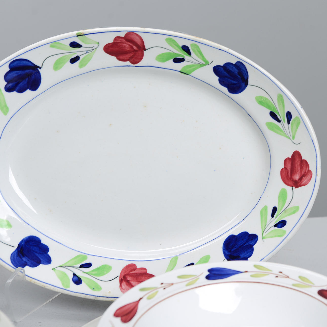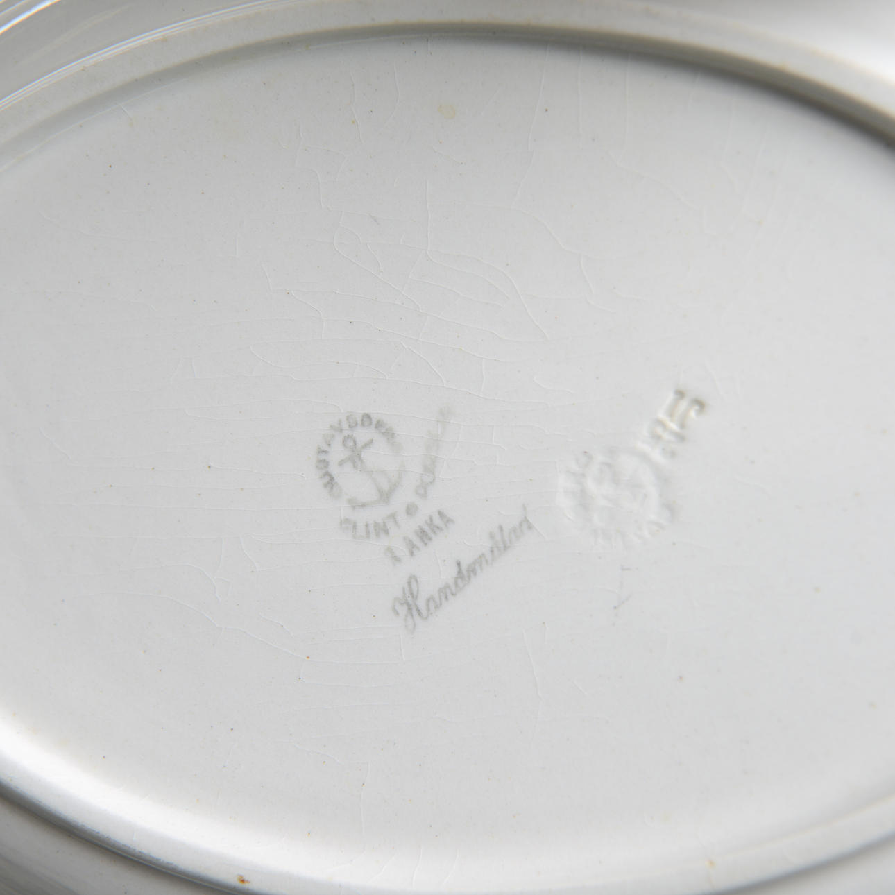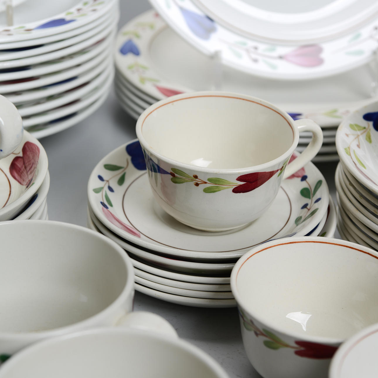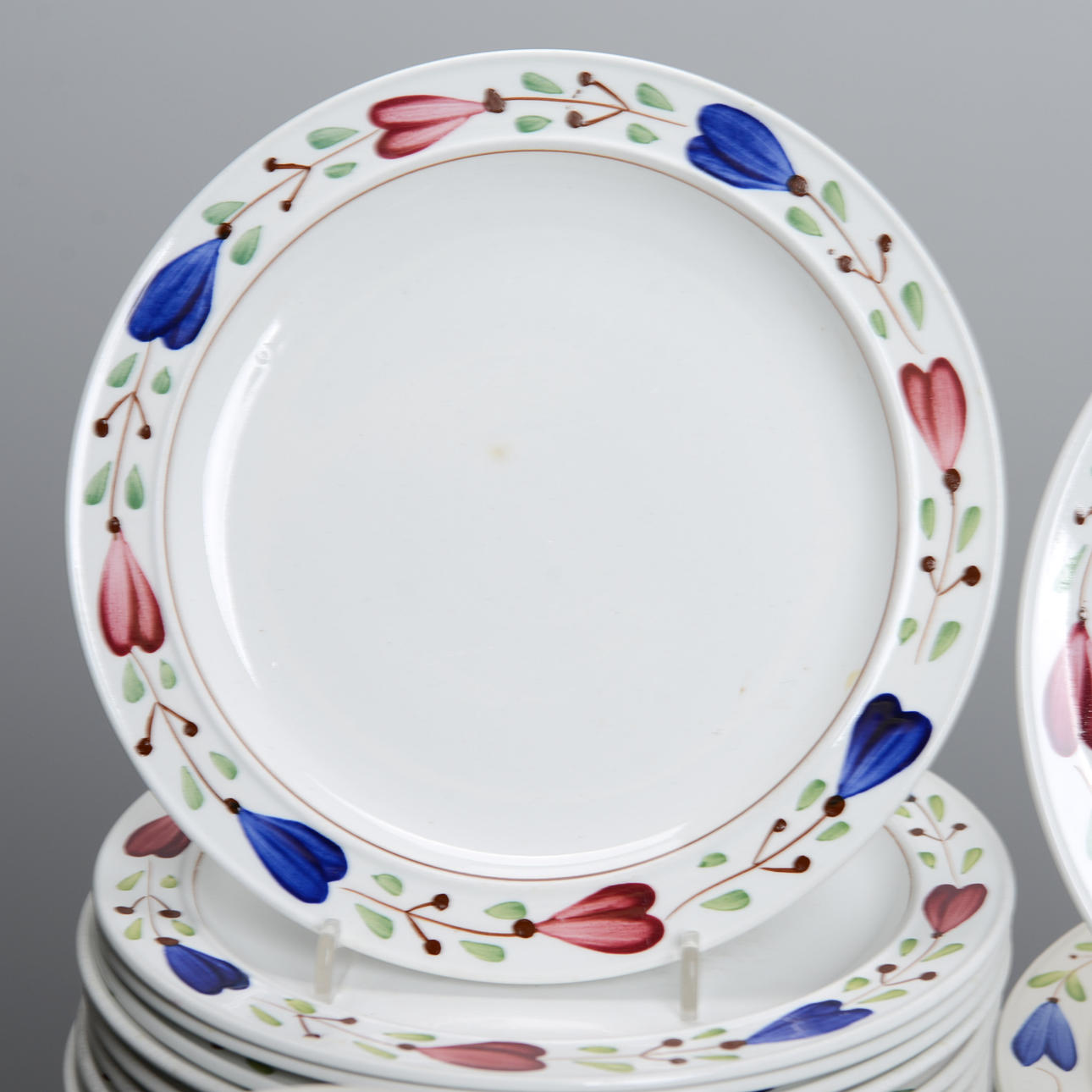 Bestående af: 2 mindre kaffekopper med underkop, 2 større kaffekopper, 5 tekopper, 6 spiseplader, 2 store dybe tallerkener, 2 små dybe tallerkener, 4 forretterplader, 3 tilbehør, 6 små tallerkener, 10 underkopper, 5 mindre underkopper, 2 fyldende underkopper, kande.