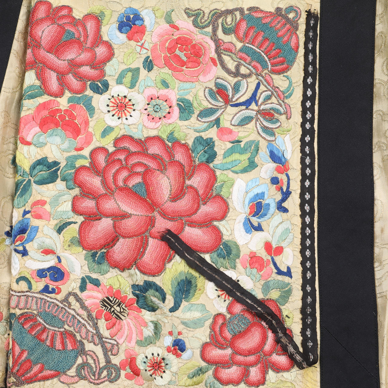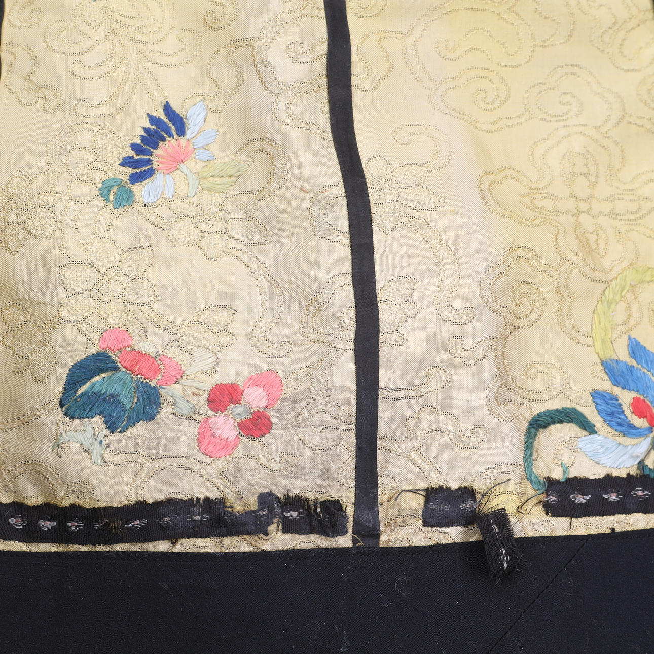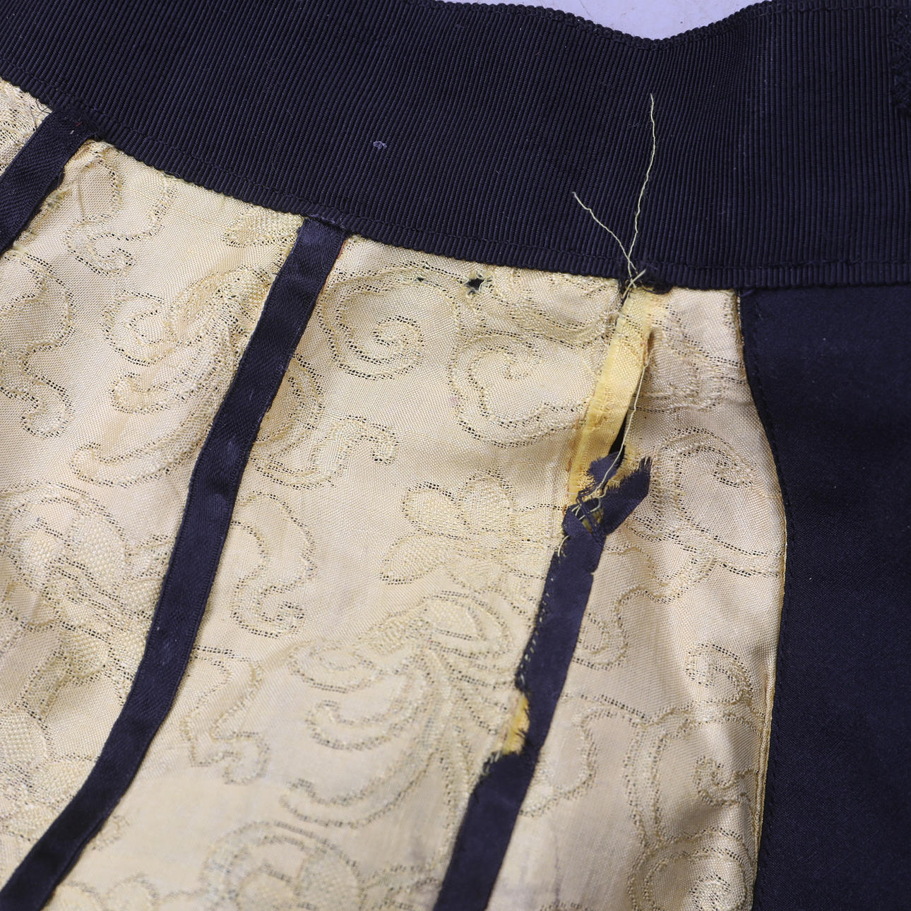 Stykker af dekorativt bånd mangler flere steder.