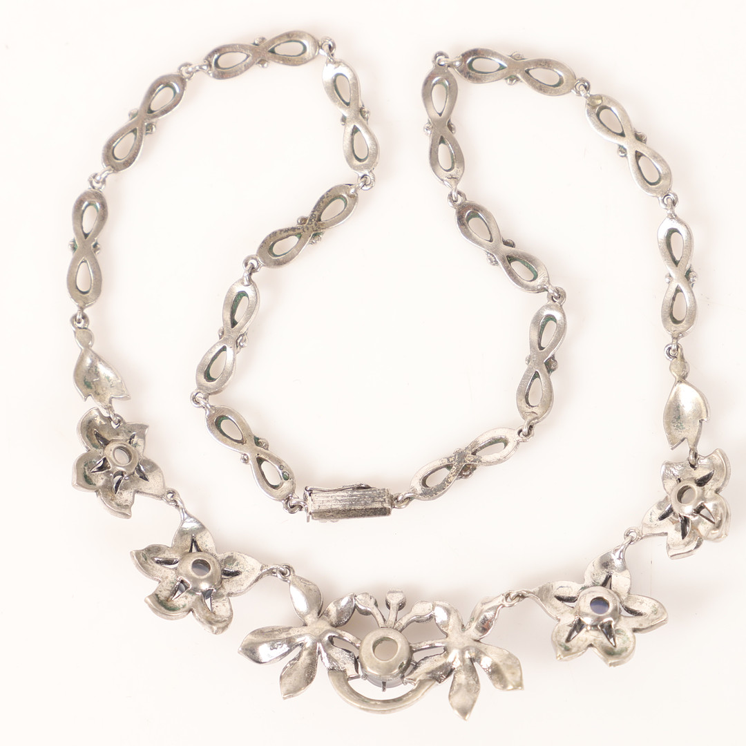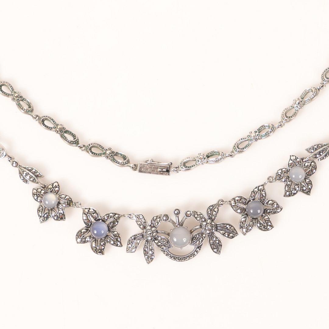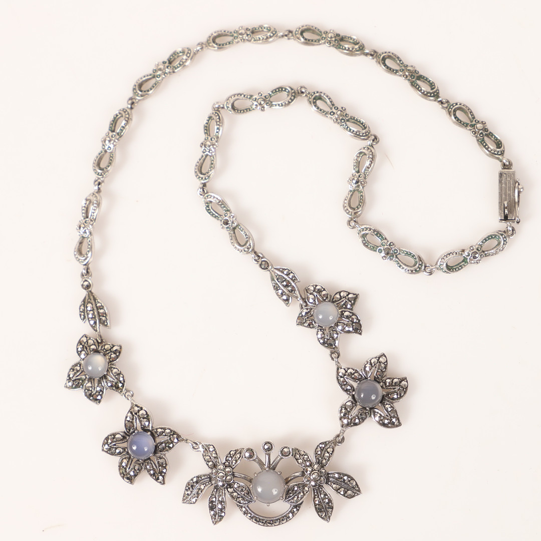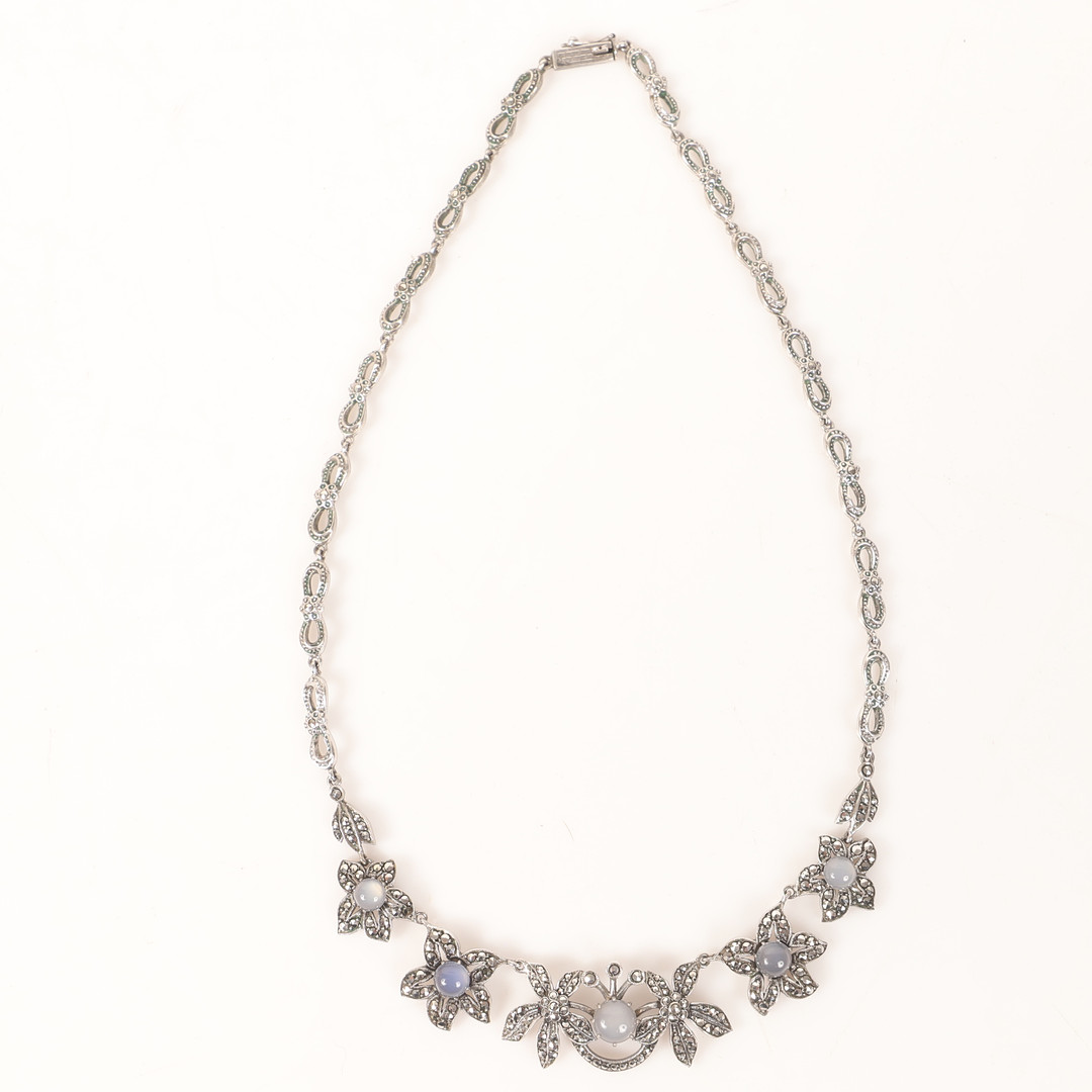 4384277. HALSKÆDE, sølv med marcasitter og cabochonslebne sten.