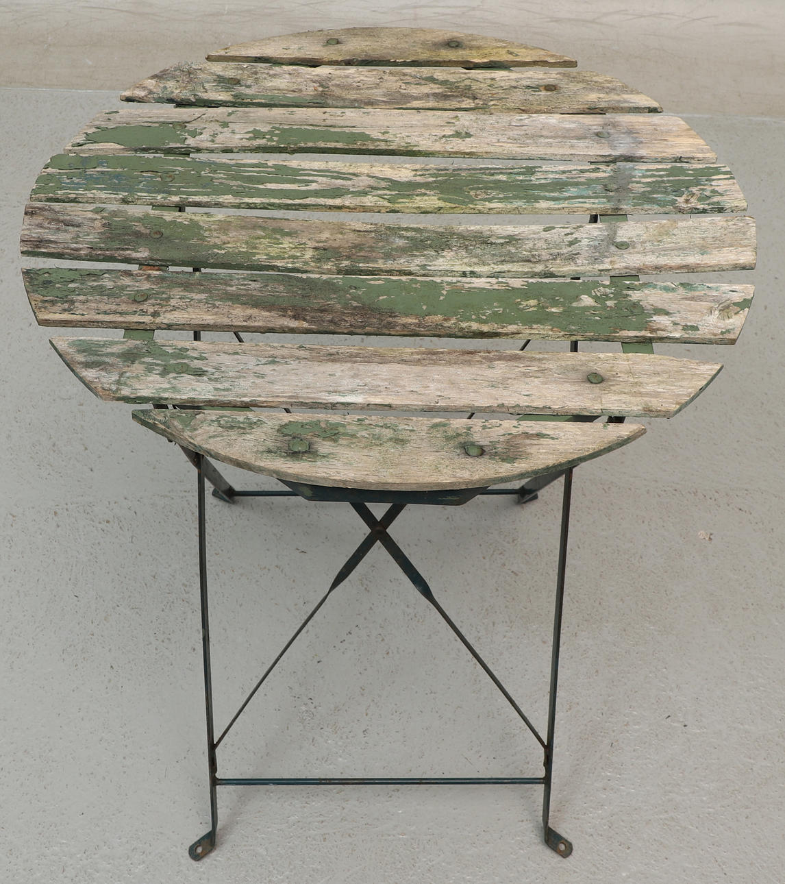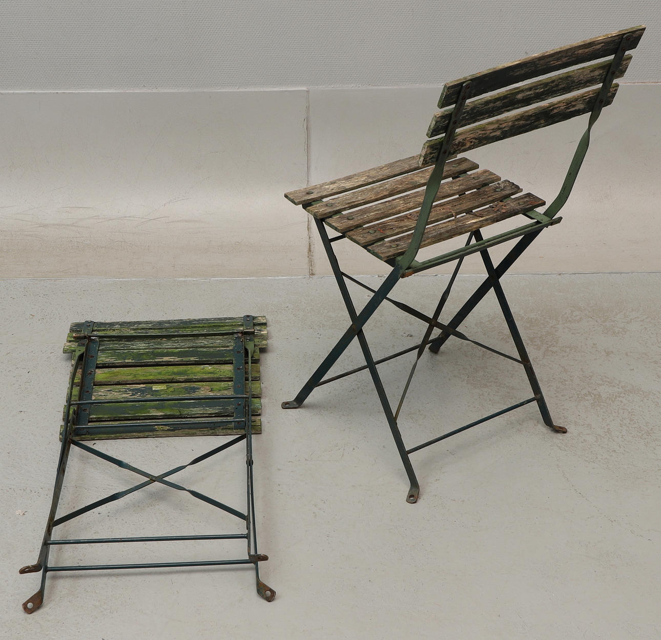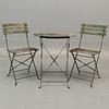 2 havestole, ryghøjde ca. 81 cm, sædehøjde ca. 46 cm, bredde ca. 38 cm. Bord, diameter ca. 59 cm, højde ca. 70 cm.
