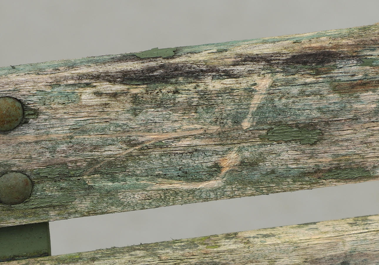 Bordet er skævt. Slid, gnidning, snavs.