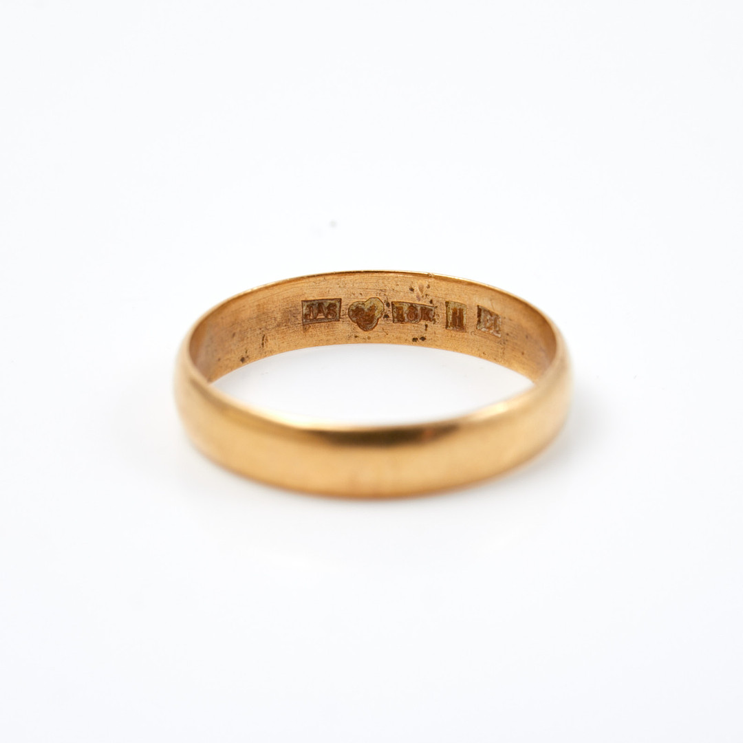 4384901. RING, 18 kt. guld glat, JAS H. 1882.