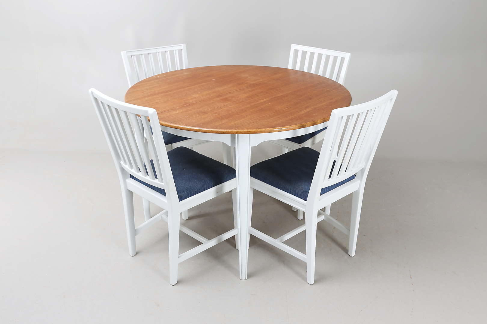 438511. SPISESTUESMØBLER, 5 stk., teaktræ, 1900-tallet.
