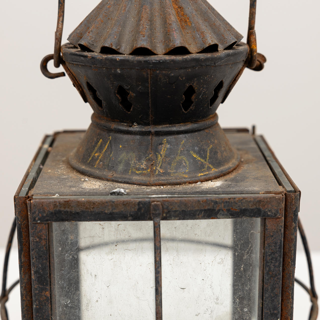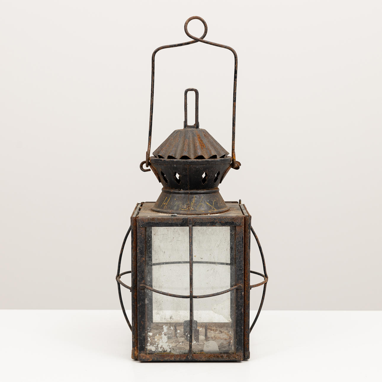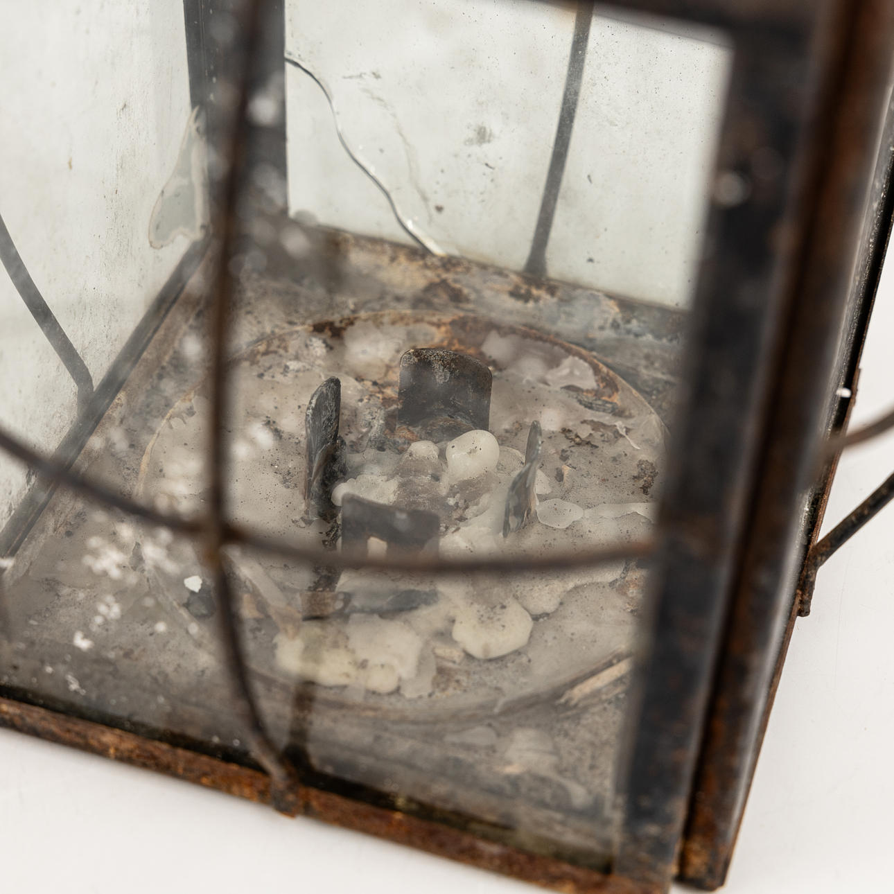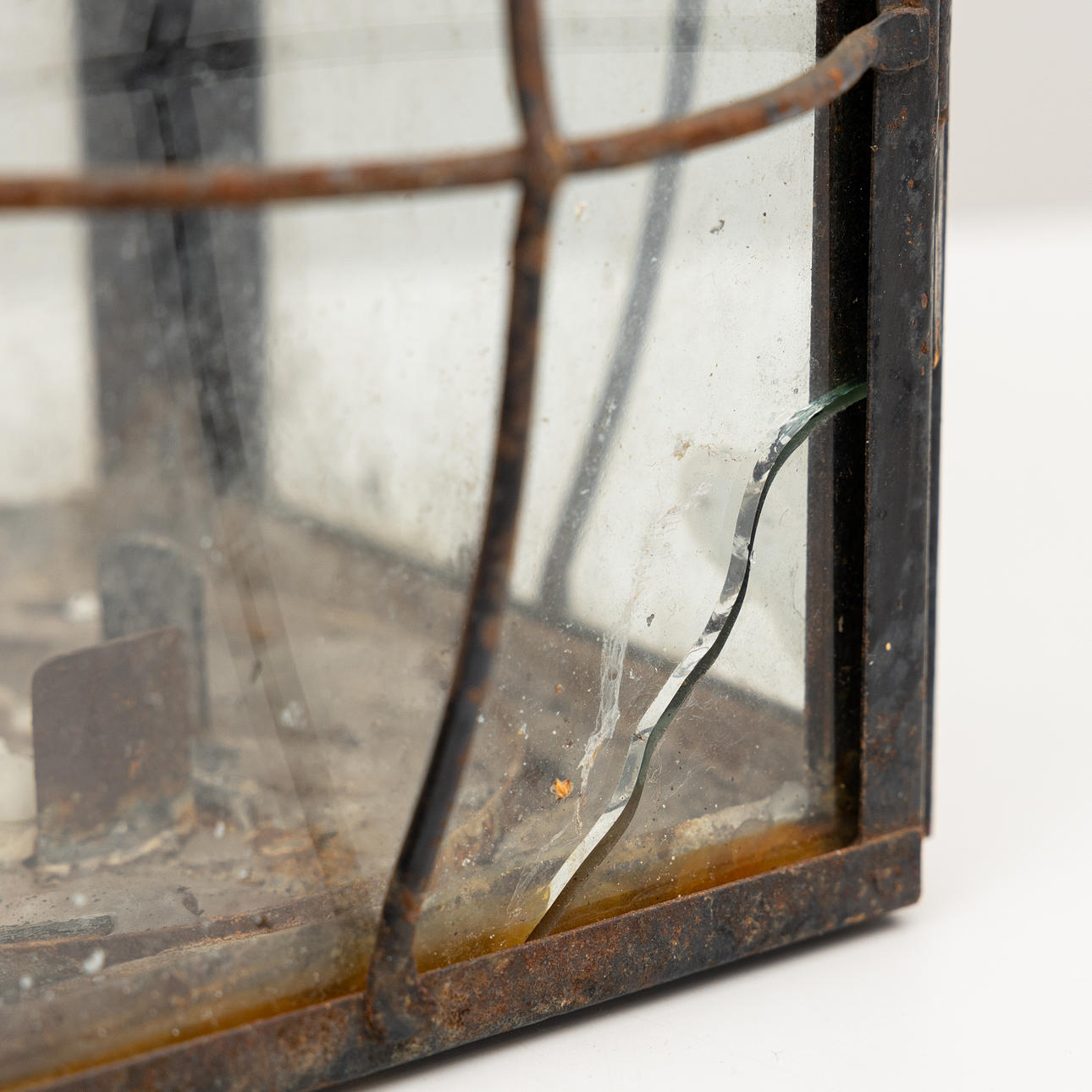 Slid, rust, stearinlysrester. Et glas med en revne.