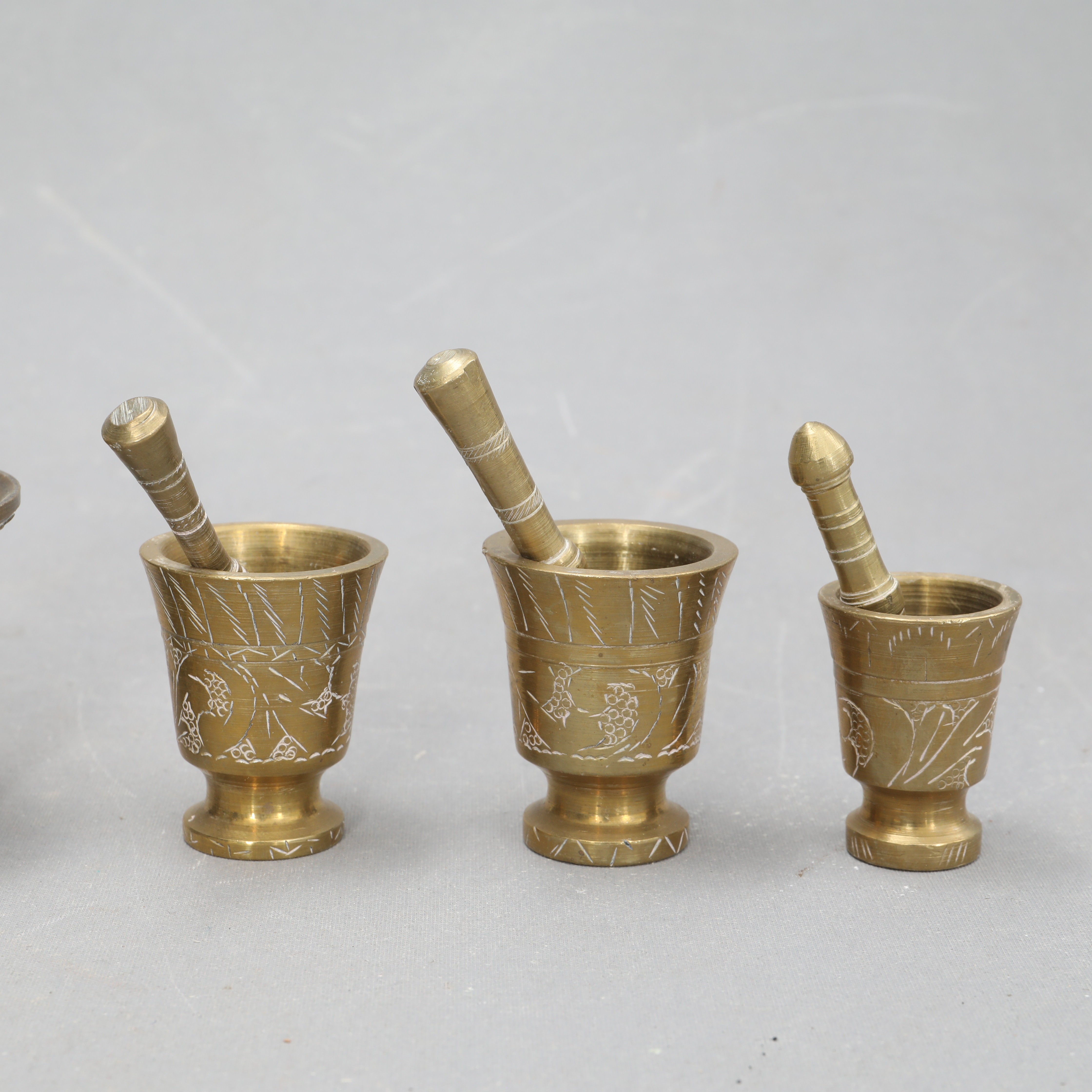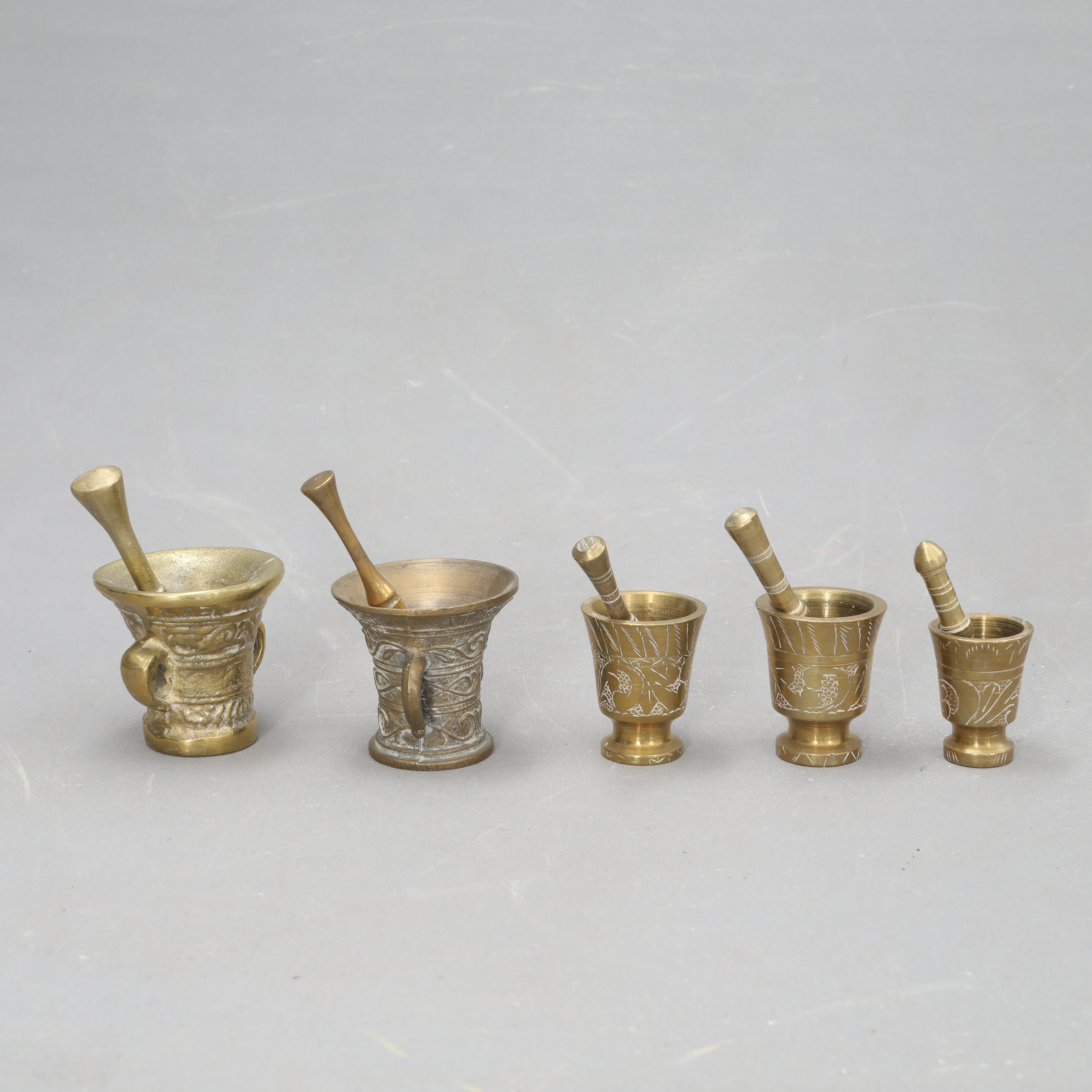 4385184. Mortlar med støddæmpere, 5 stk., messing.