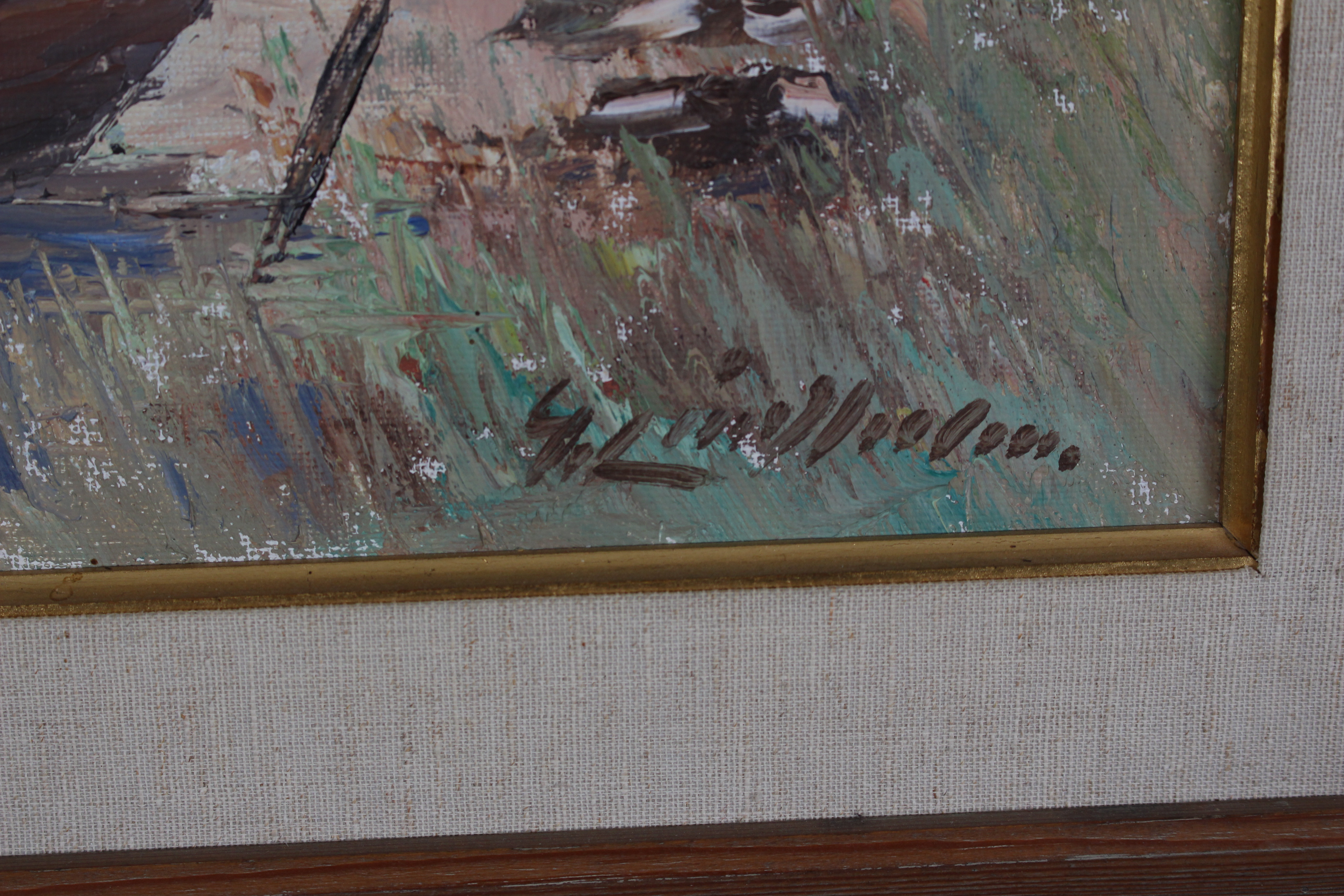 4385498. OIDENTIFIERAD KONSTNÄR. Olie på panel.