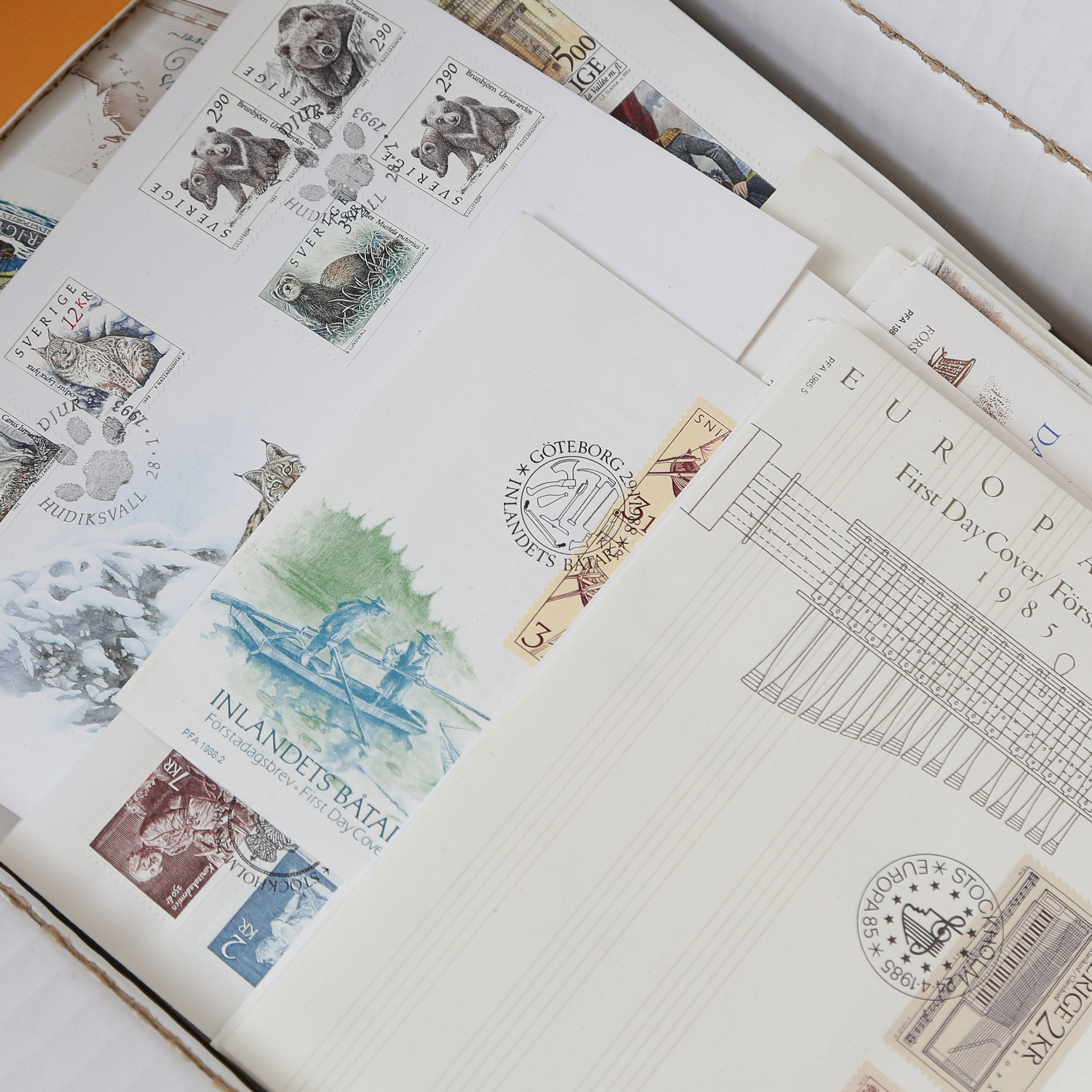 4385634. ÆSKE MED FØRSTE DAGS BREVE, STOR MÆNGDE.