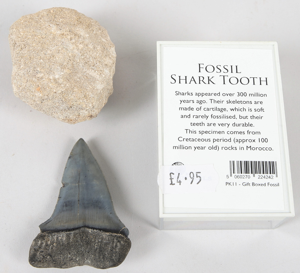 4385662. FOSSILER, 3 stykker, hajtænder.