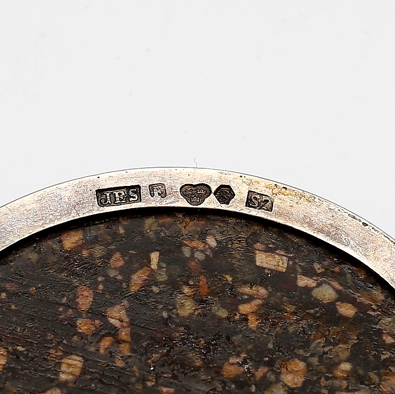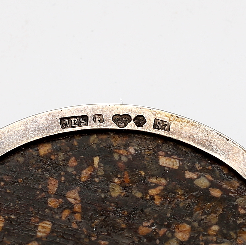 438582. BROCHE, porfyr og sølv, 1920.