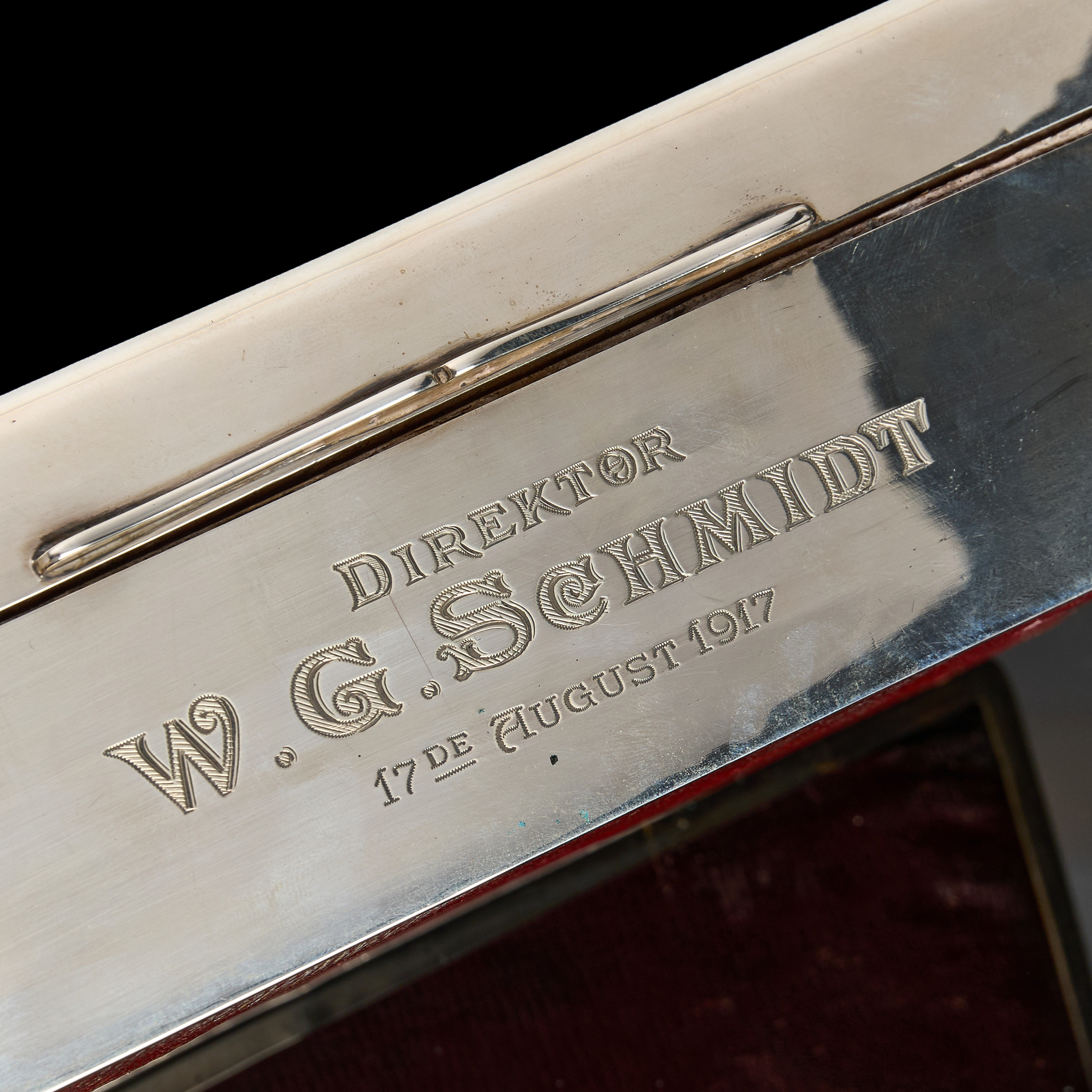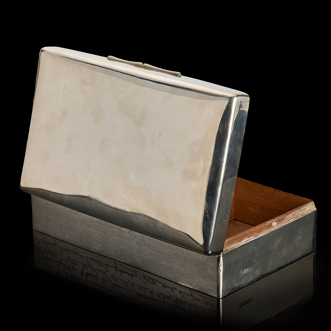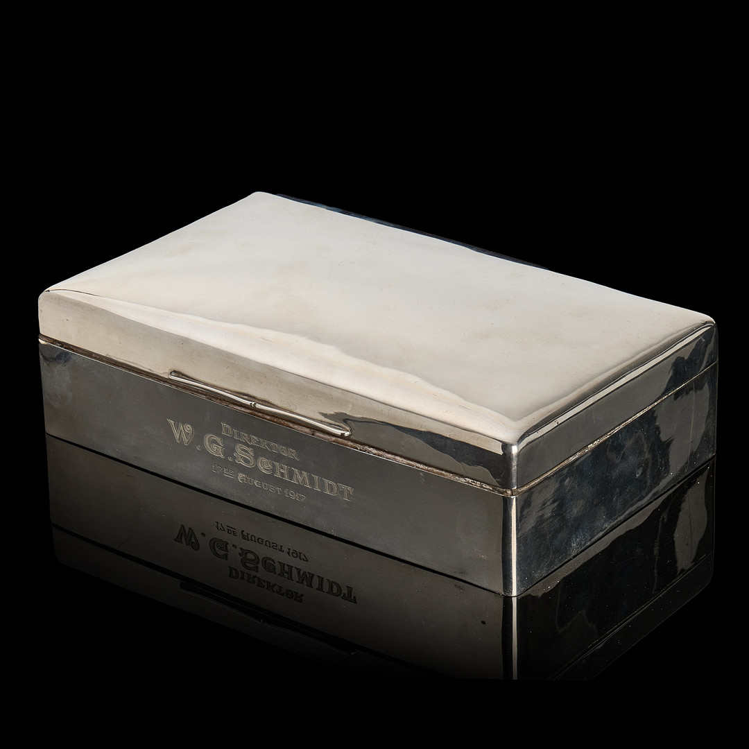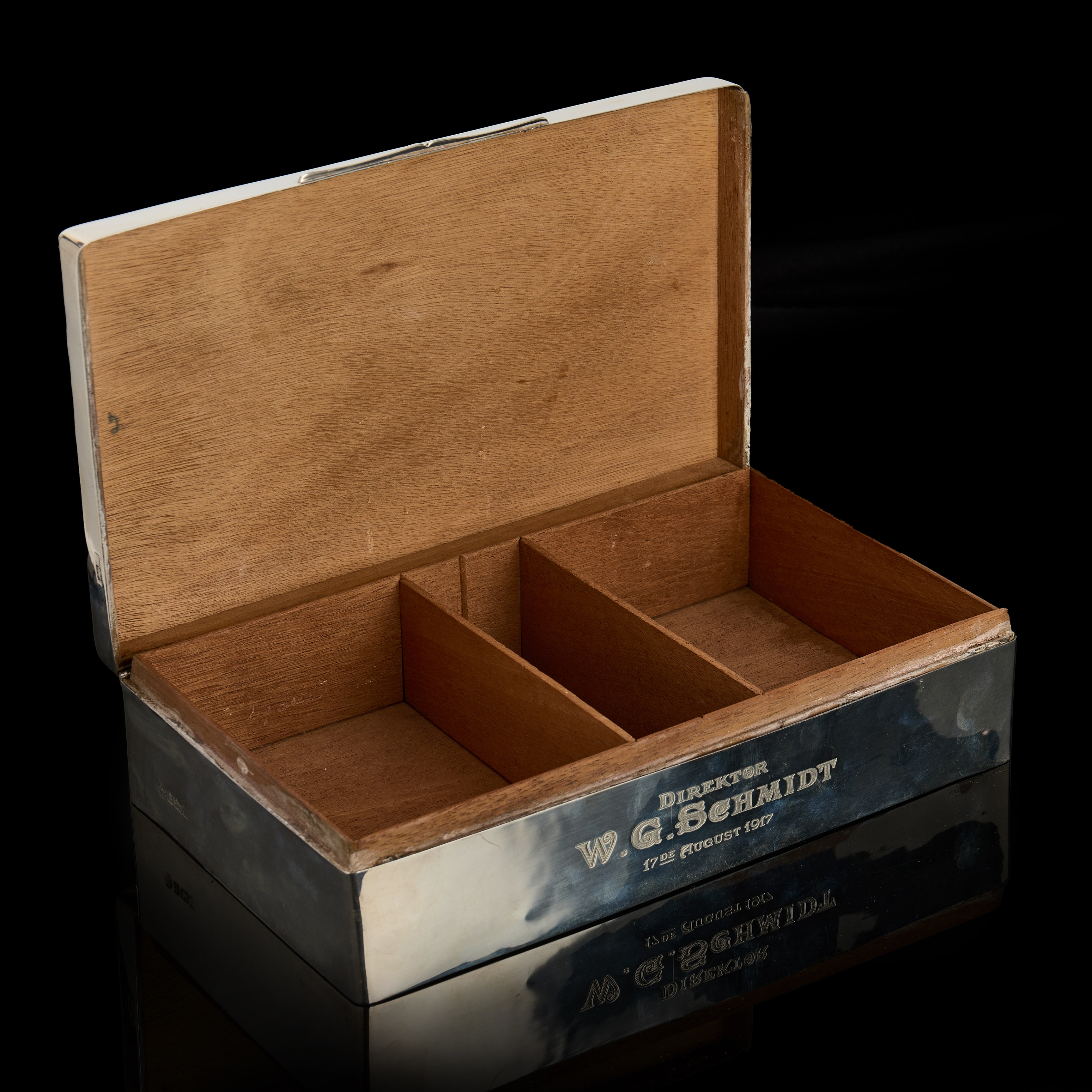 4386011. CIGARKASSE, sølv, cedertræ interiør, England.