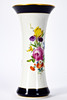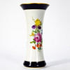 Hvidt porcelæn med plychrome maleri, brede kanter i koboltblå og fine kanter i guld. I dobbelt konfiguration på en stående ring. Bouquet af blomster på displayet og spredte blomster. H.: ca. 25,5 cm Underglaseret blåt sværdmærke og malermærke.