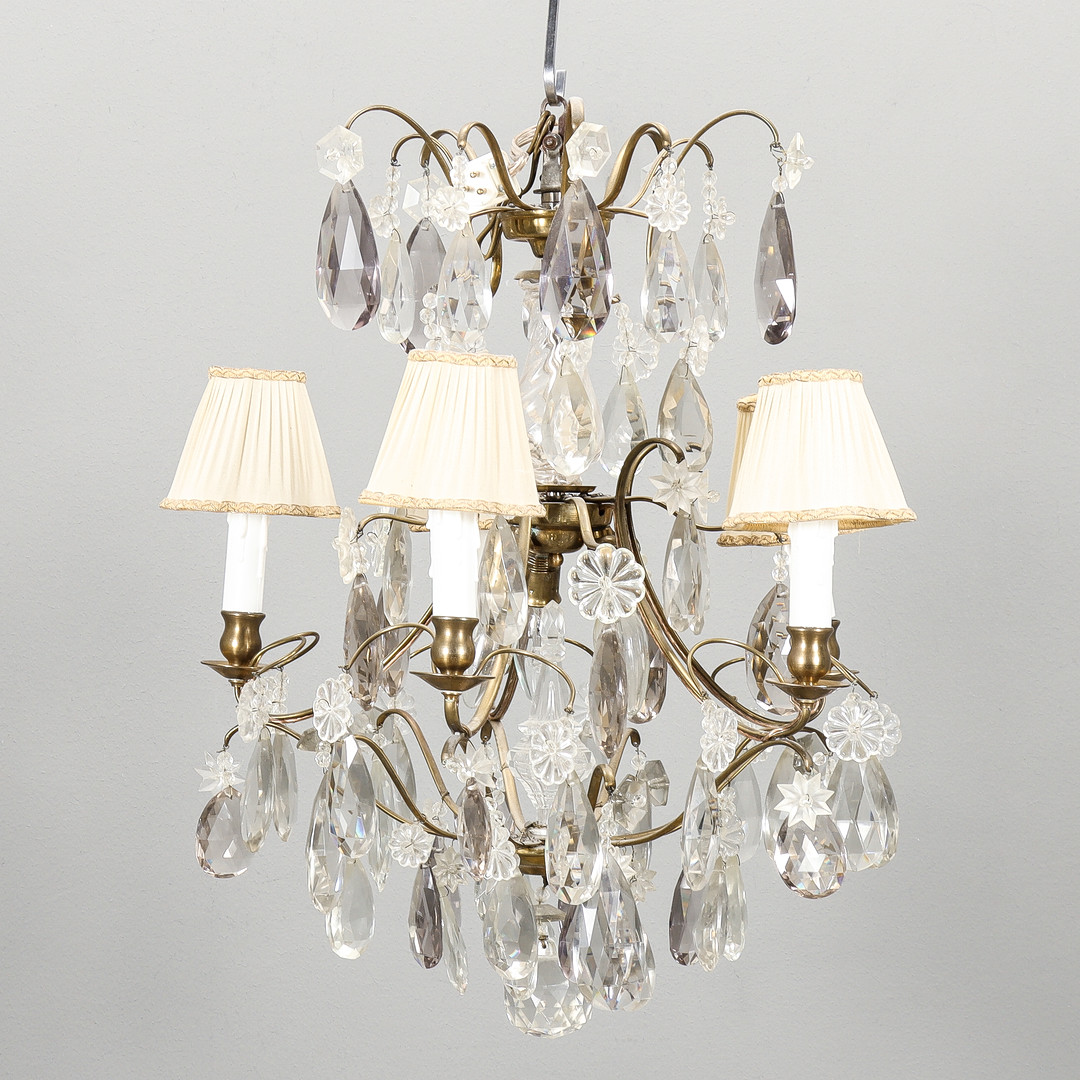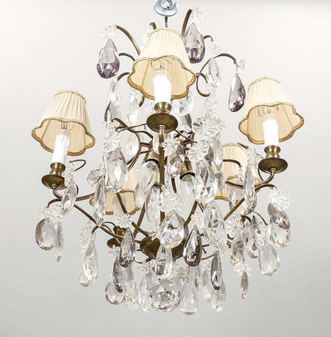 4387080. KRYSTAL LYSEKRONE barok stil, 5 lette arme.