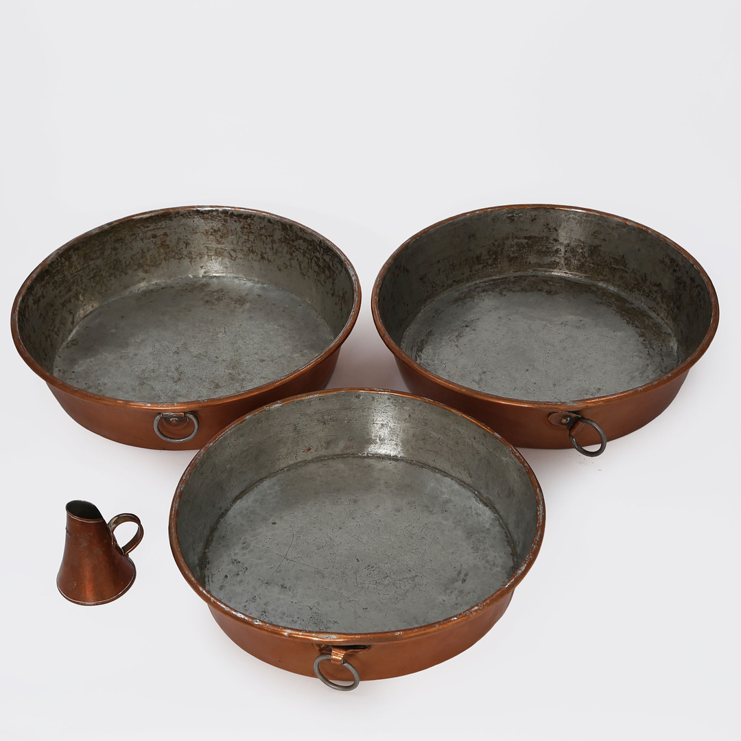 4387376. 3 OSTEFORME OG EN MÅLEKOP.