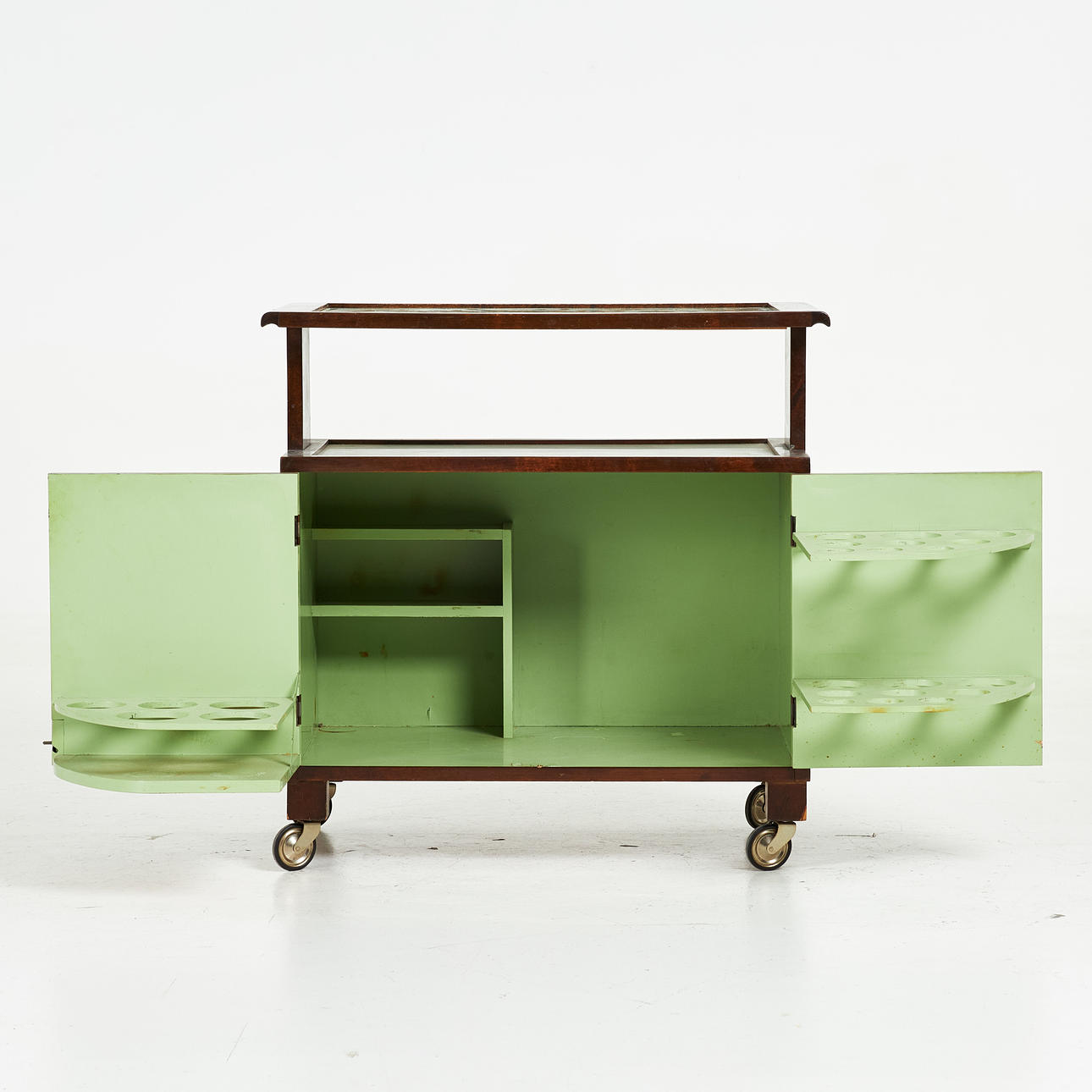 Slid relateret til brug og alder, mærker, ridser, delvist bleget, senere renoveret, indvendigt umalet/omarbejdet.