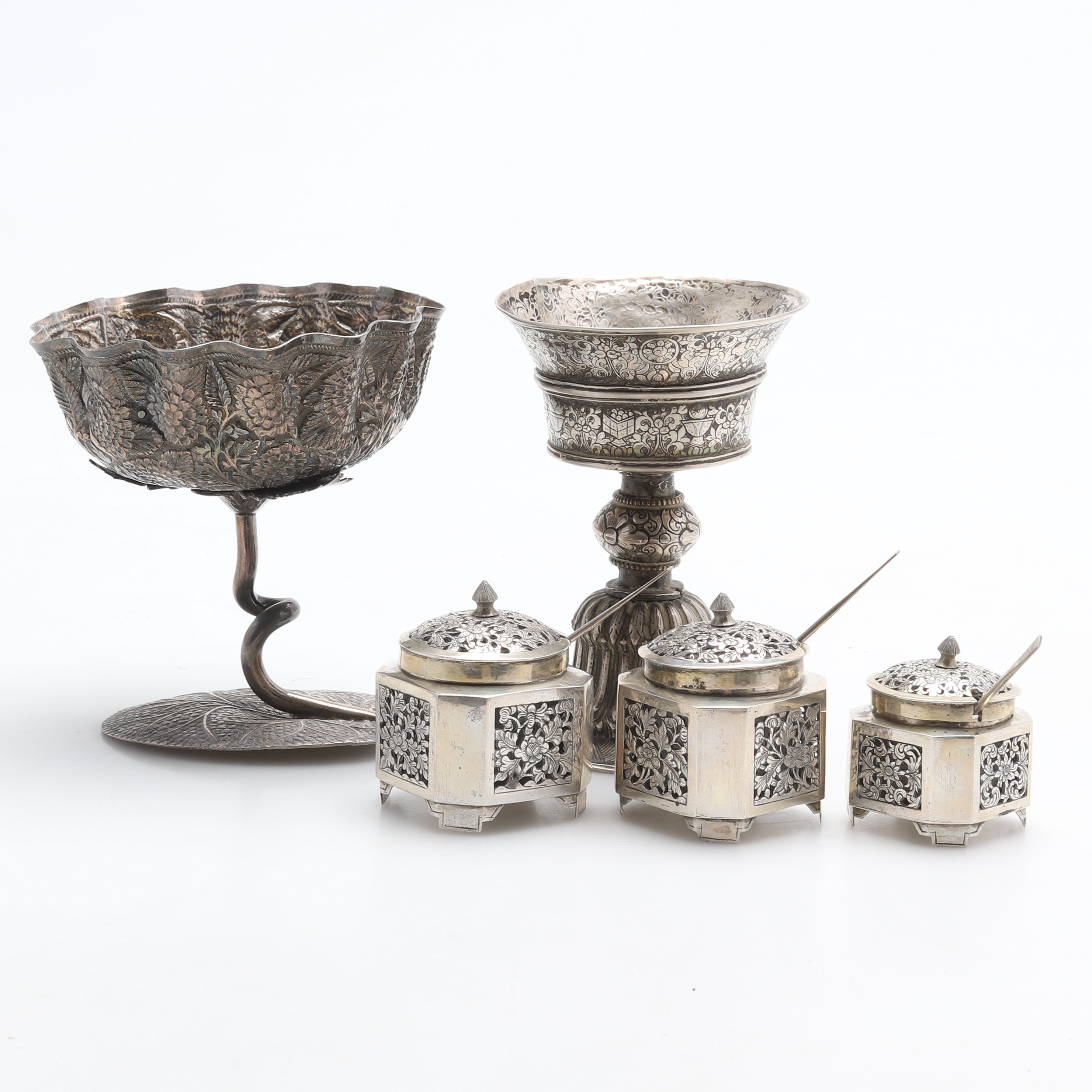 4387681. SAMLING SØLV, 5 stk., Vægt ca. 469 gram.