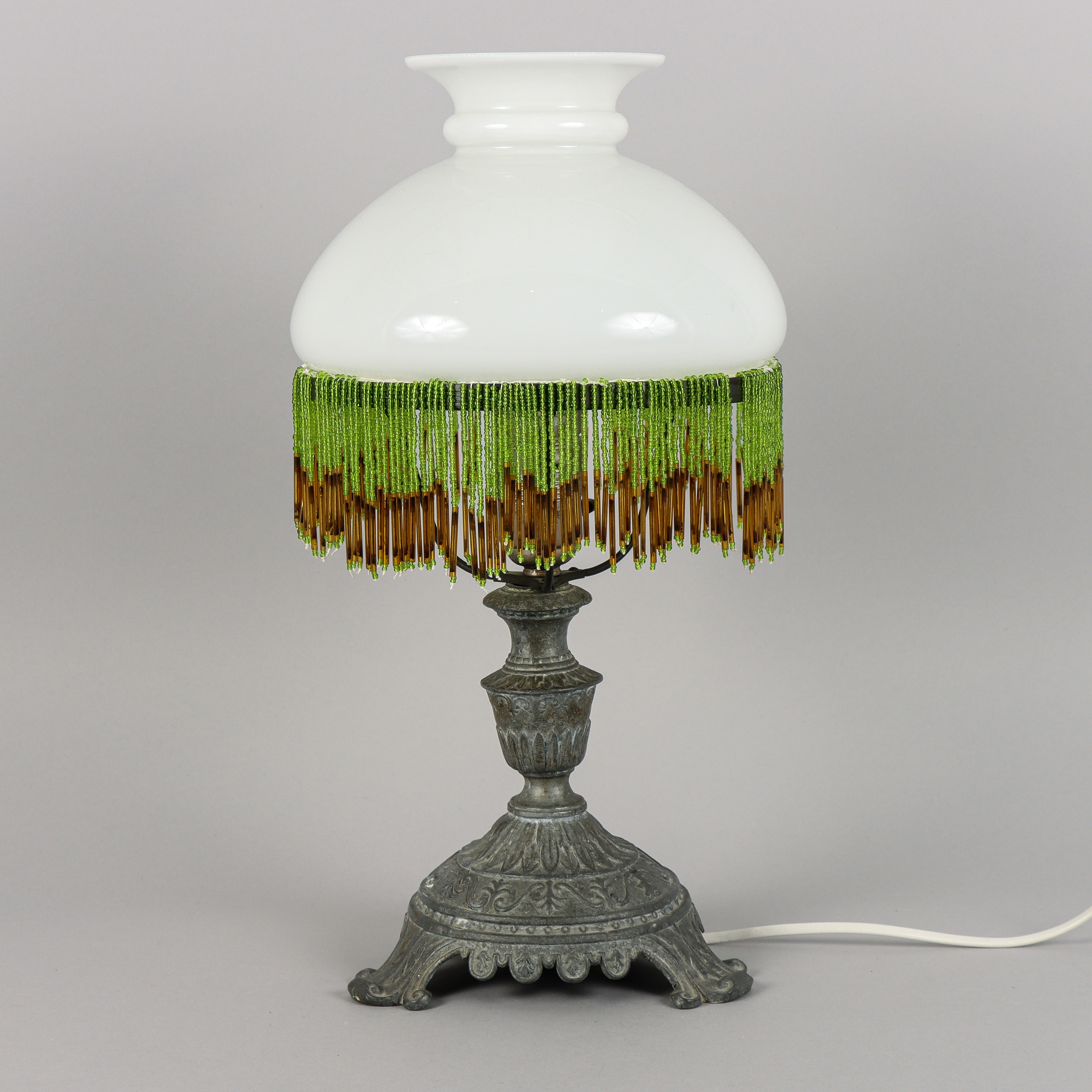 4387970. BORDLAMP-kop med perlefrynser.