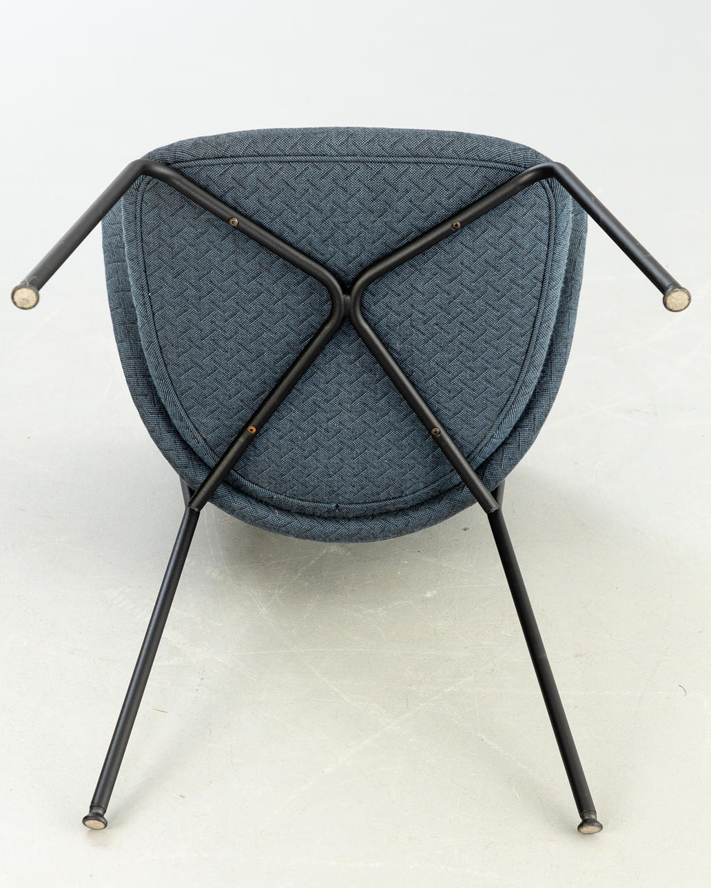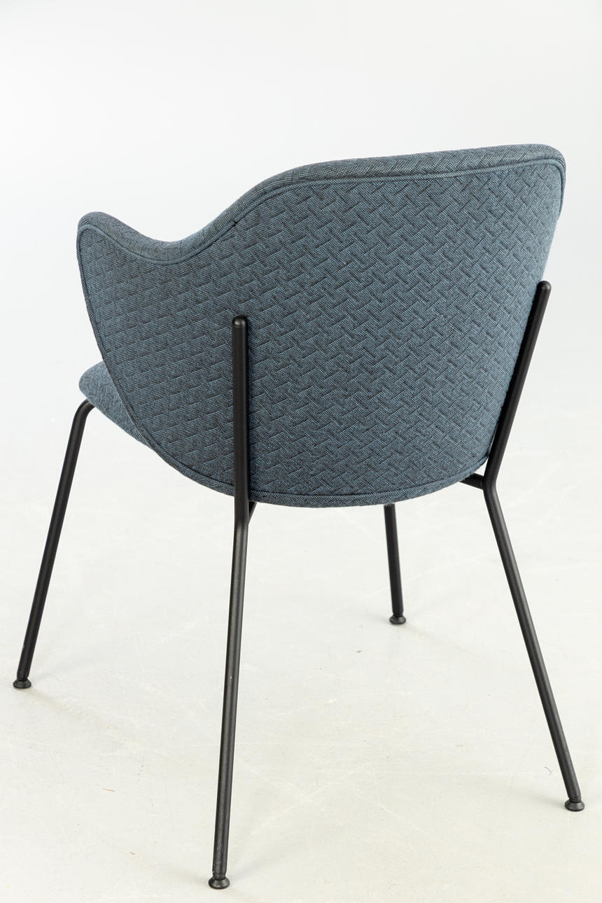 Stål, pulverlakeret i sort. Mørkeblåt stof.