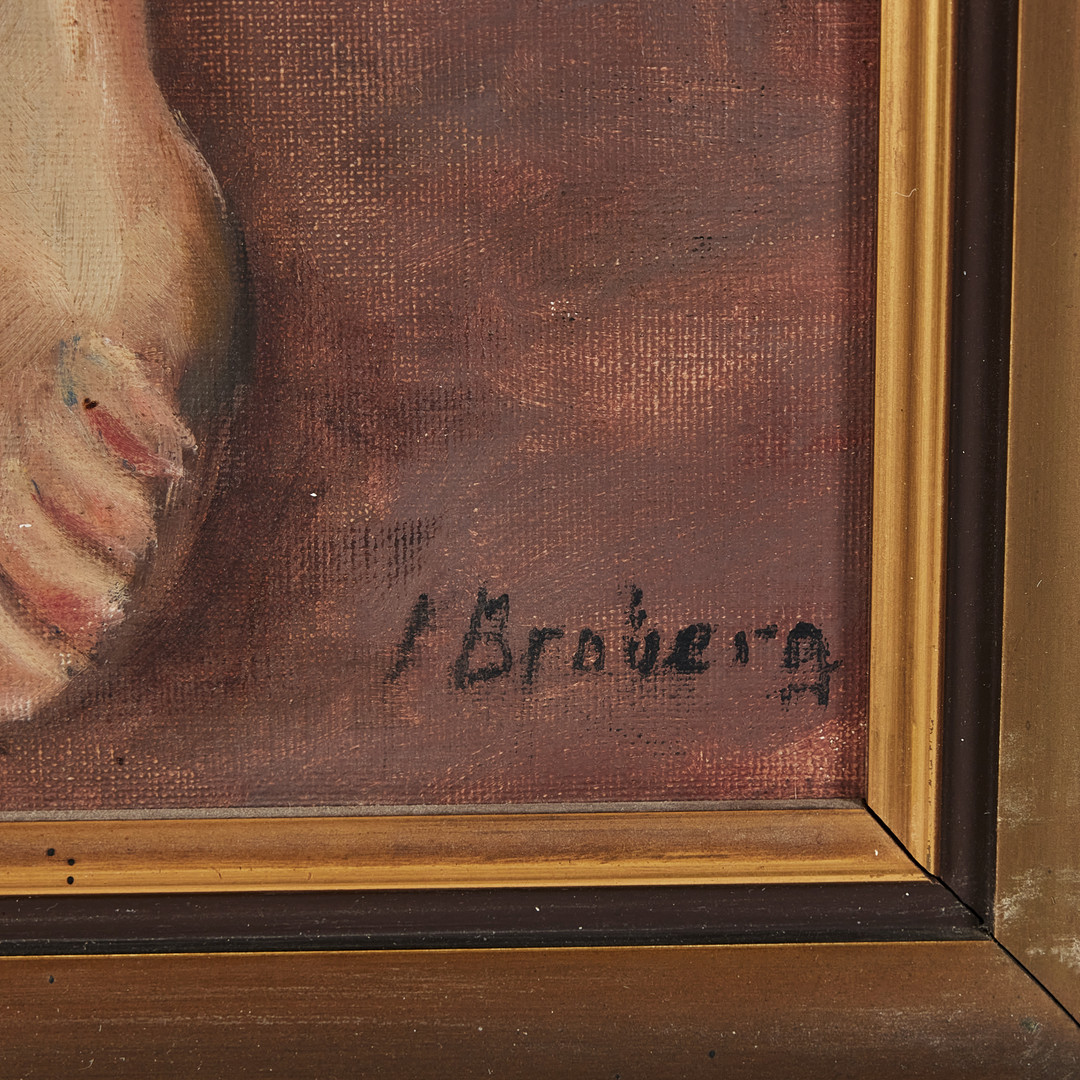 4388823. OIDENTIFIERAD KONSTNÄR (1900-TAL). Siddende model, olie på lærred.