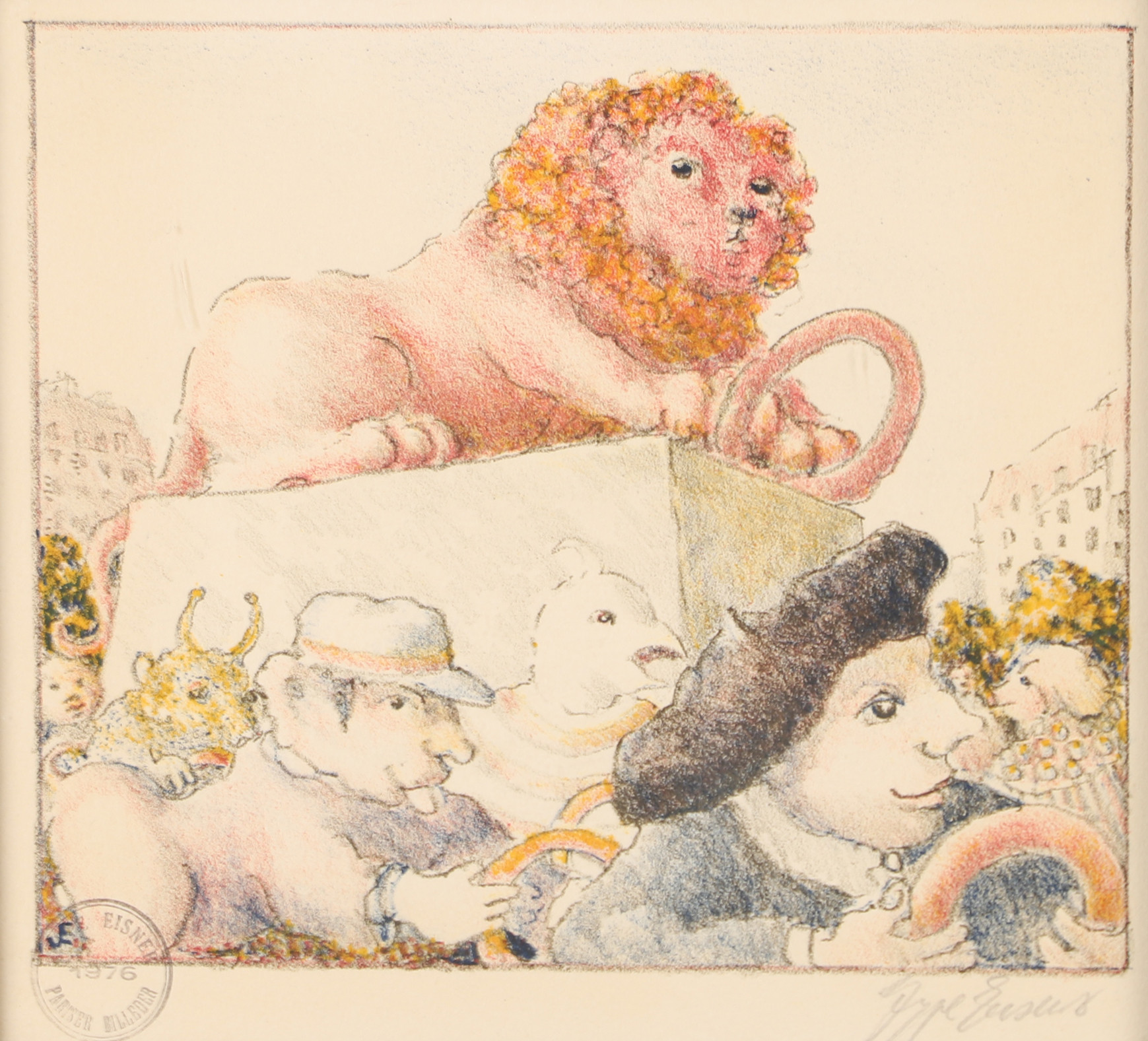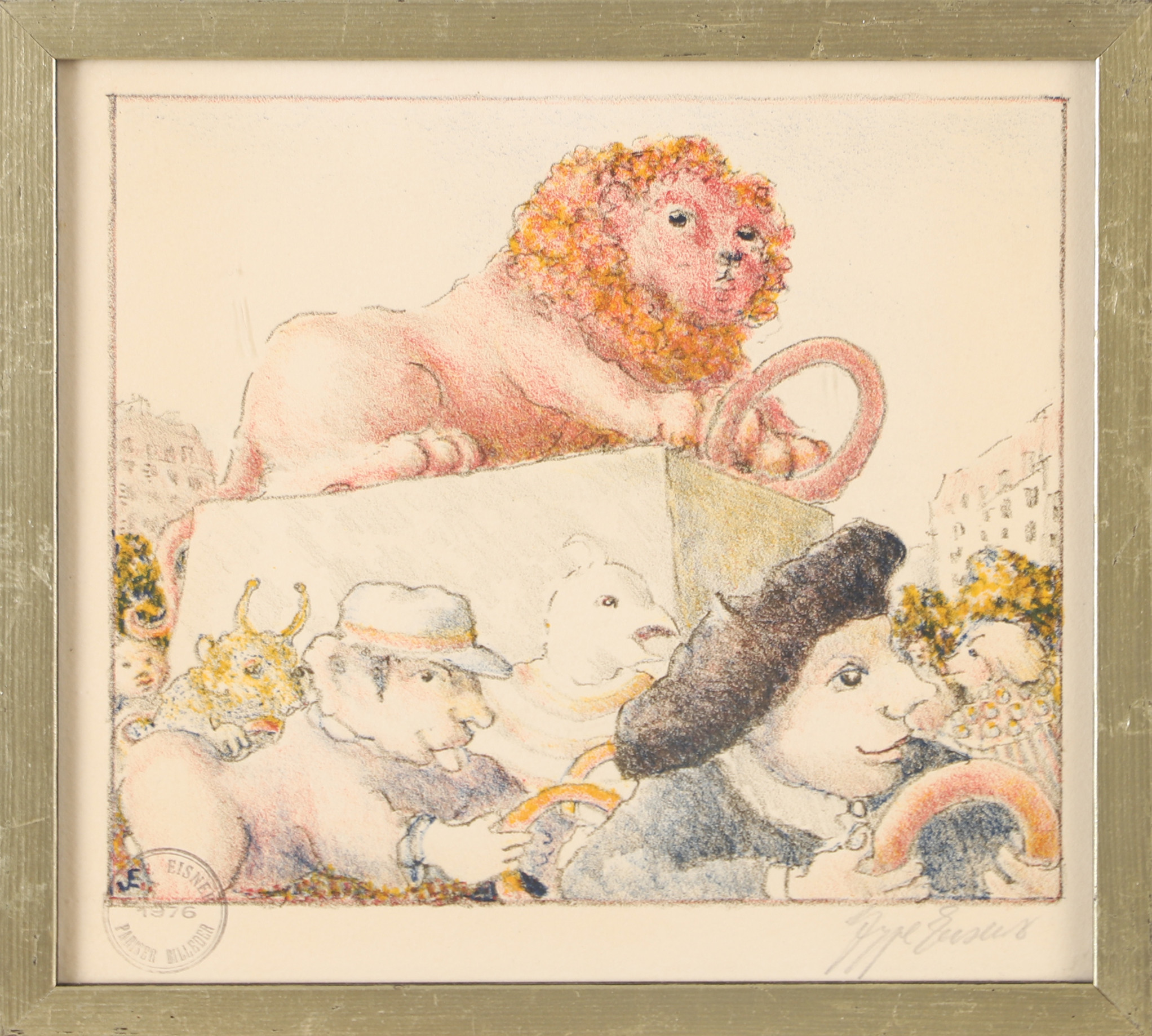 4389044. JEPPE EISNER. Løve, farvelitografi, signeret.