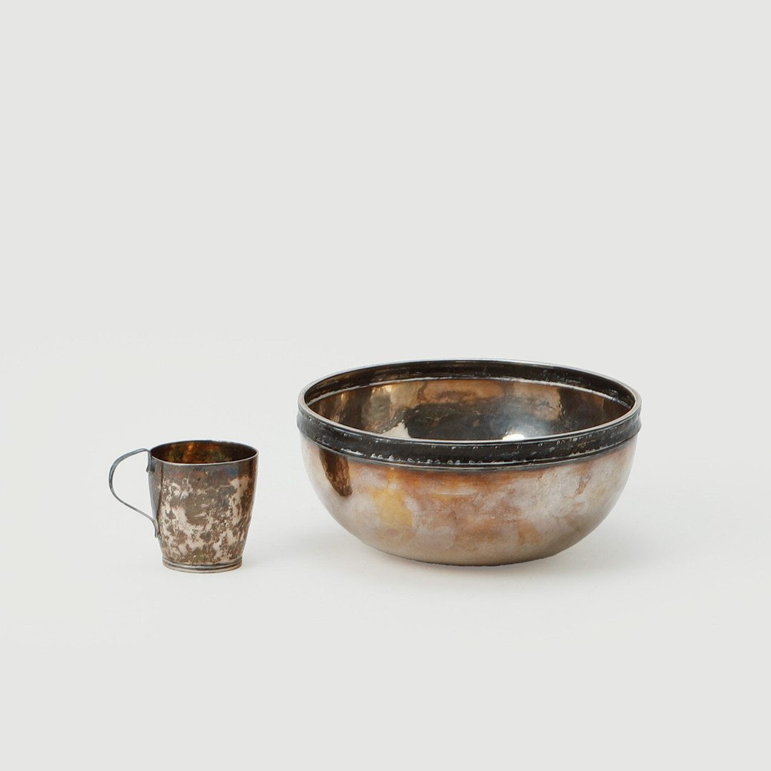 4390181. SKÅL OG KOP, sølv, vægt ca. 285 gram.