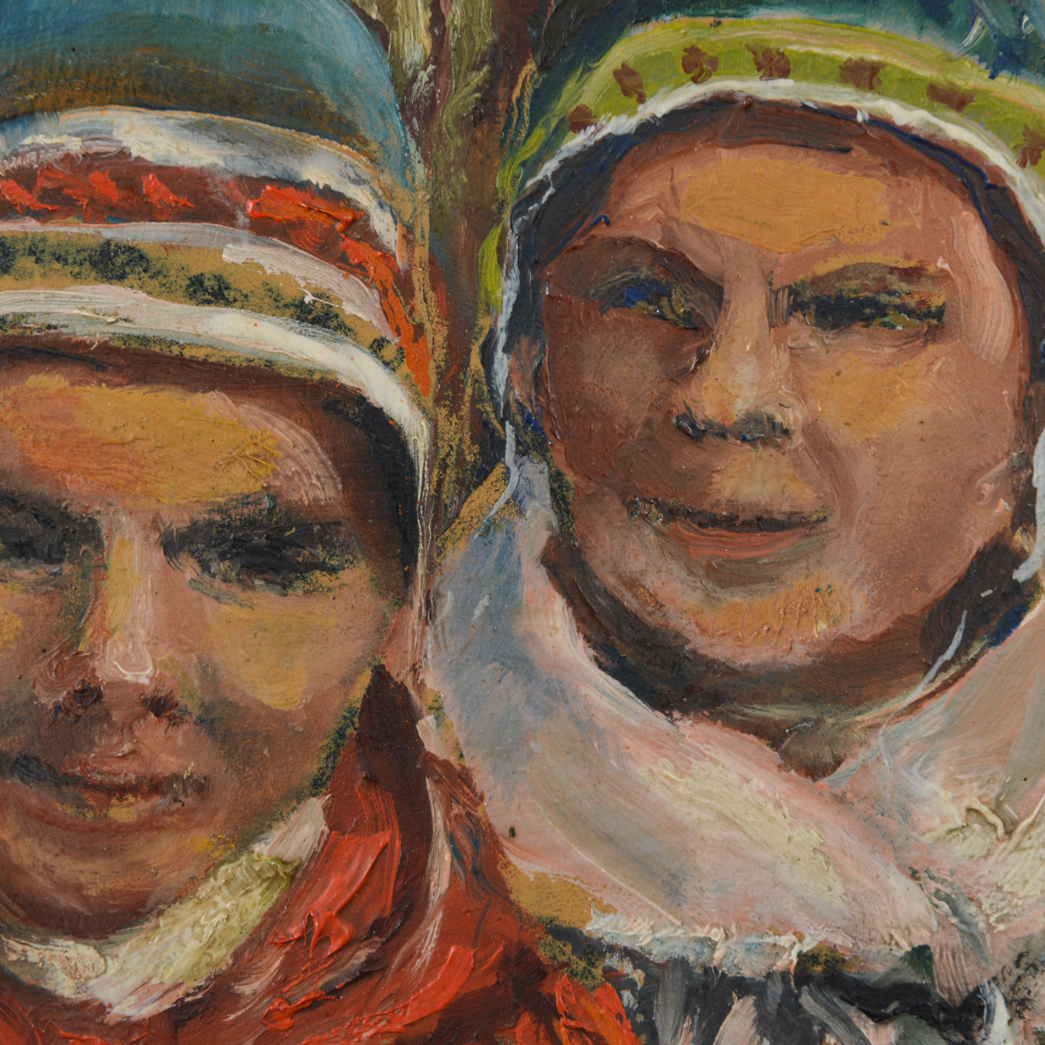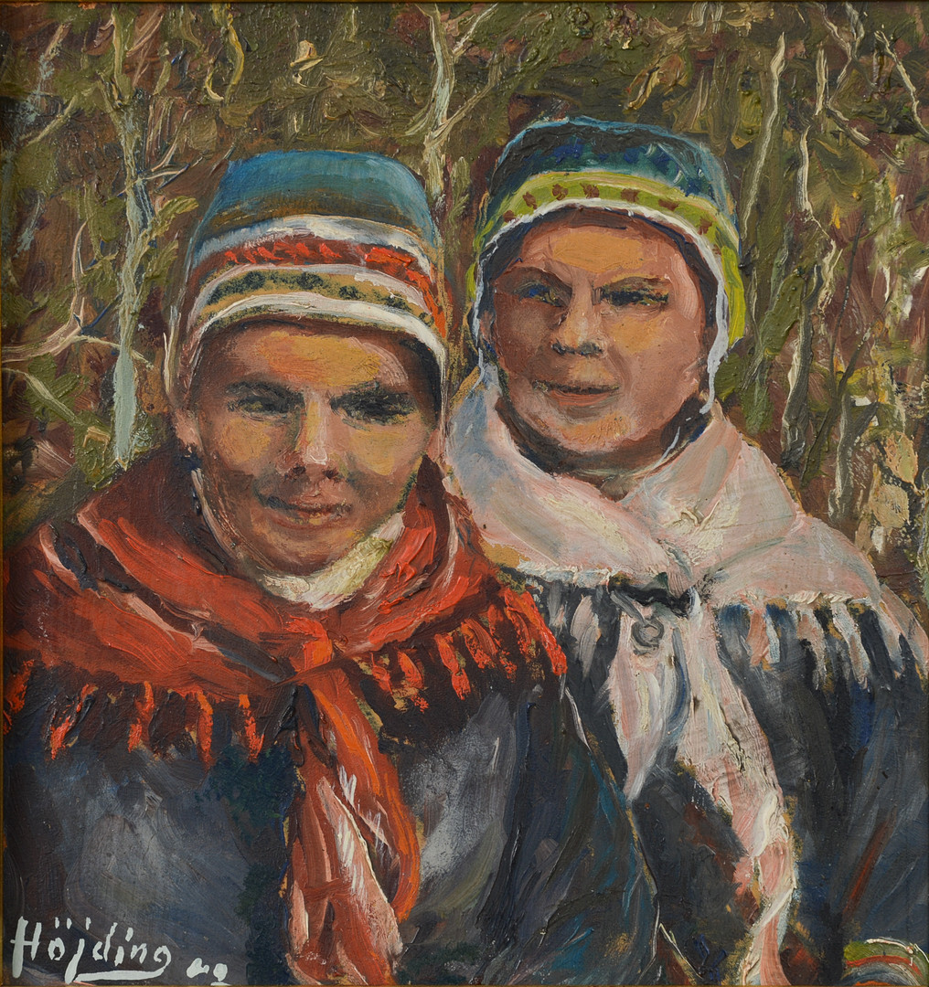 4390195. OIDENTIFIERAD KONSTNÄR. Samiske piger, olie på panel, signeret.