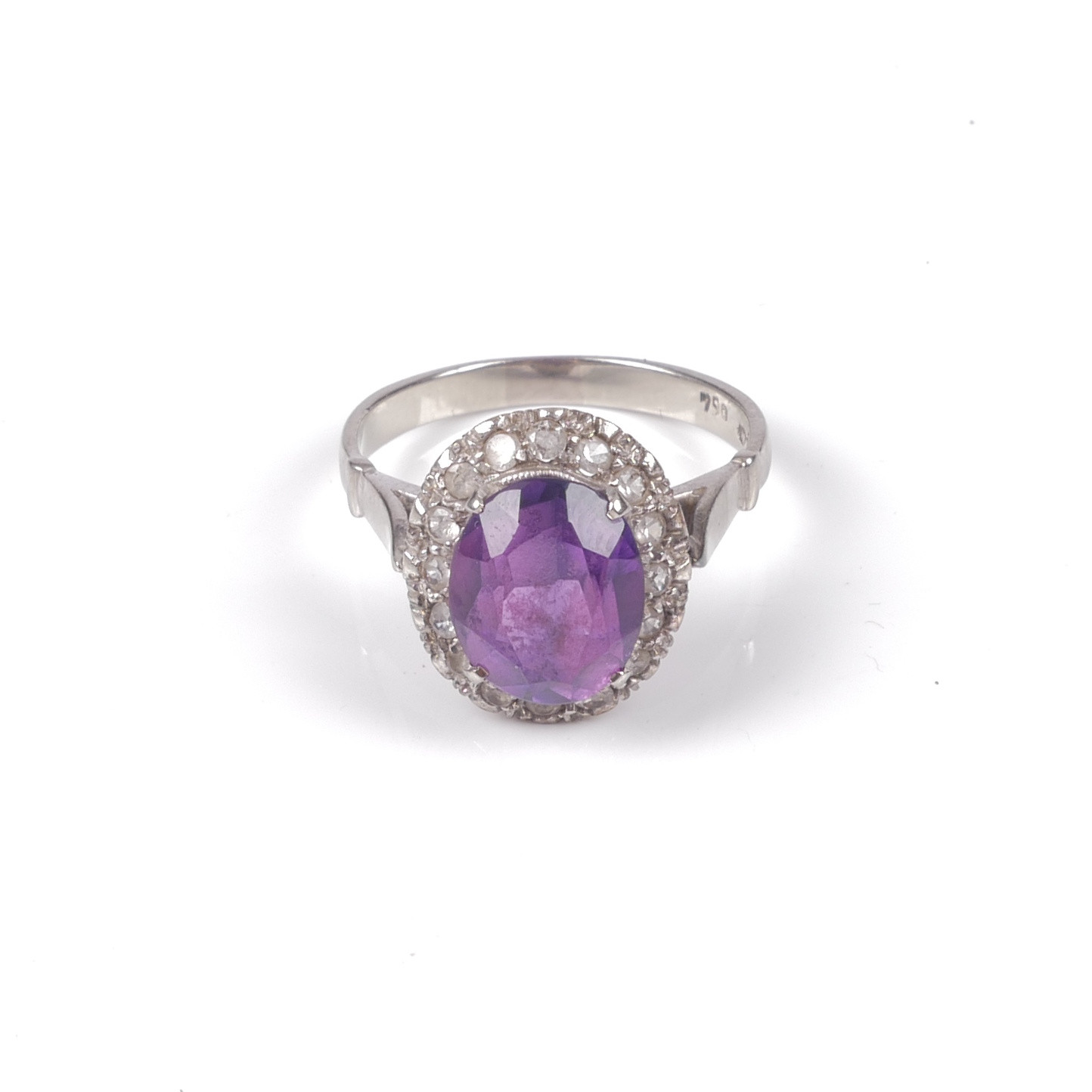 4391770. RING, K18 hvidguld med syntetisk sten.