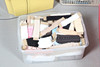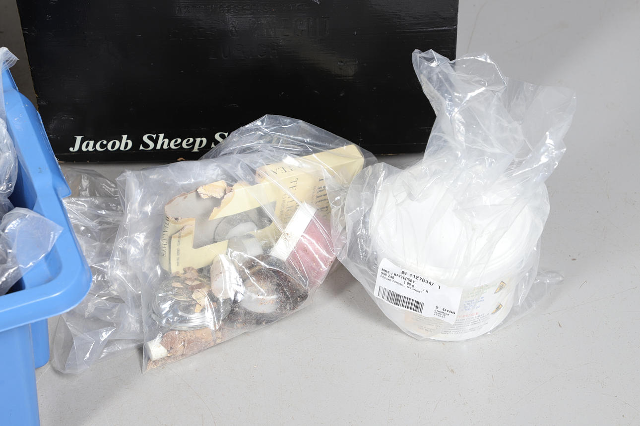 I forskellige kasser (største h 30cm, b 40cm, d 30cm. Inkluderer syrelaterede magasiner, forskellige blondeprøver osv.
