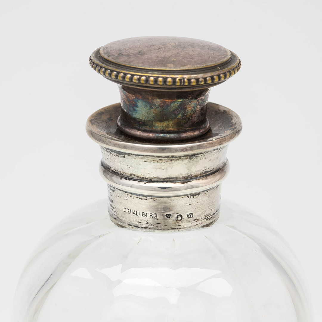 4392317. KARAN/FLASKE, glas, sterlingsølv, Hallberg, 1906.