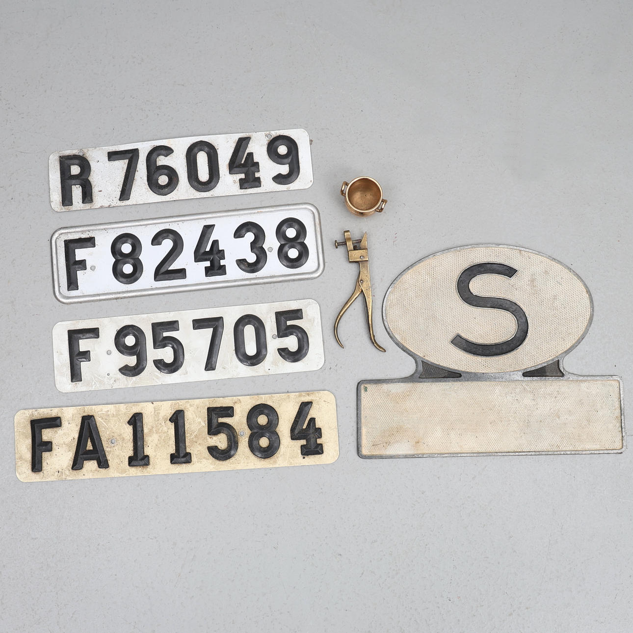 4393409. TRÆKASSE MED INDHOLD. Blandt andet nummerplader.