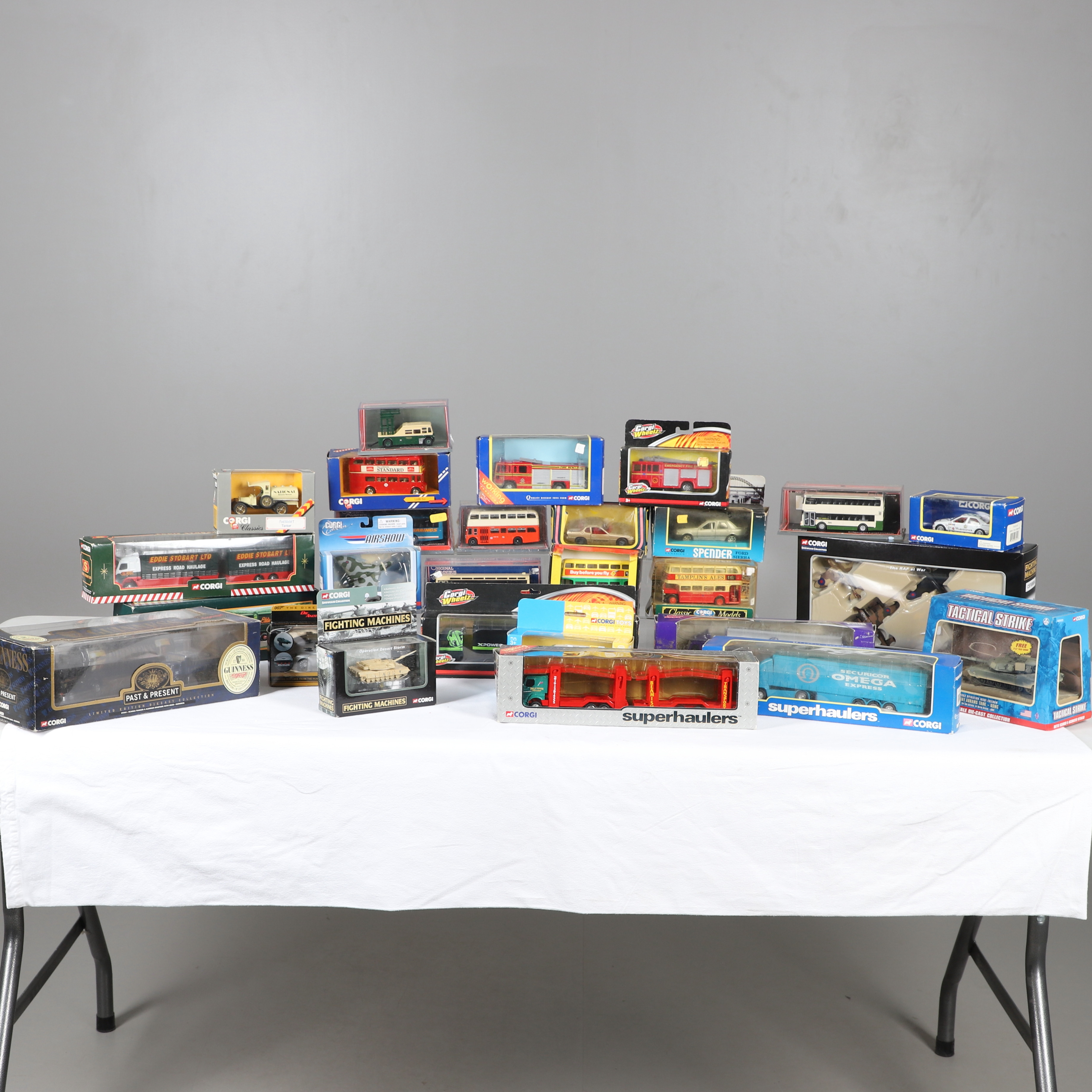 4393804. FORSKELLIGE BOKSEDE CORGI LEGETØJ.