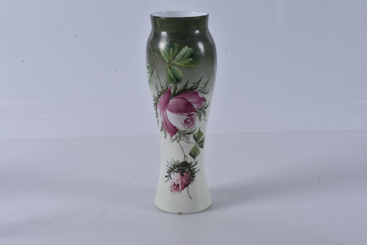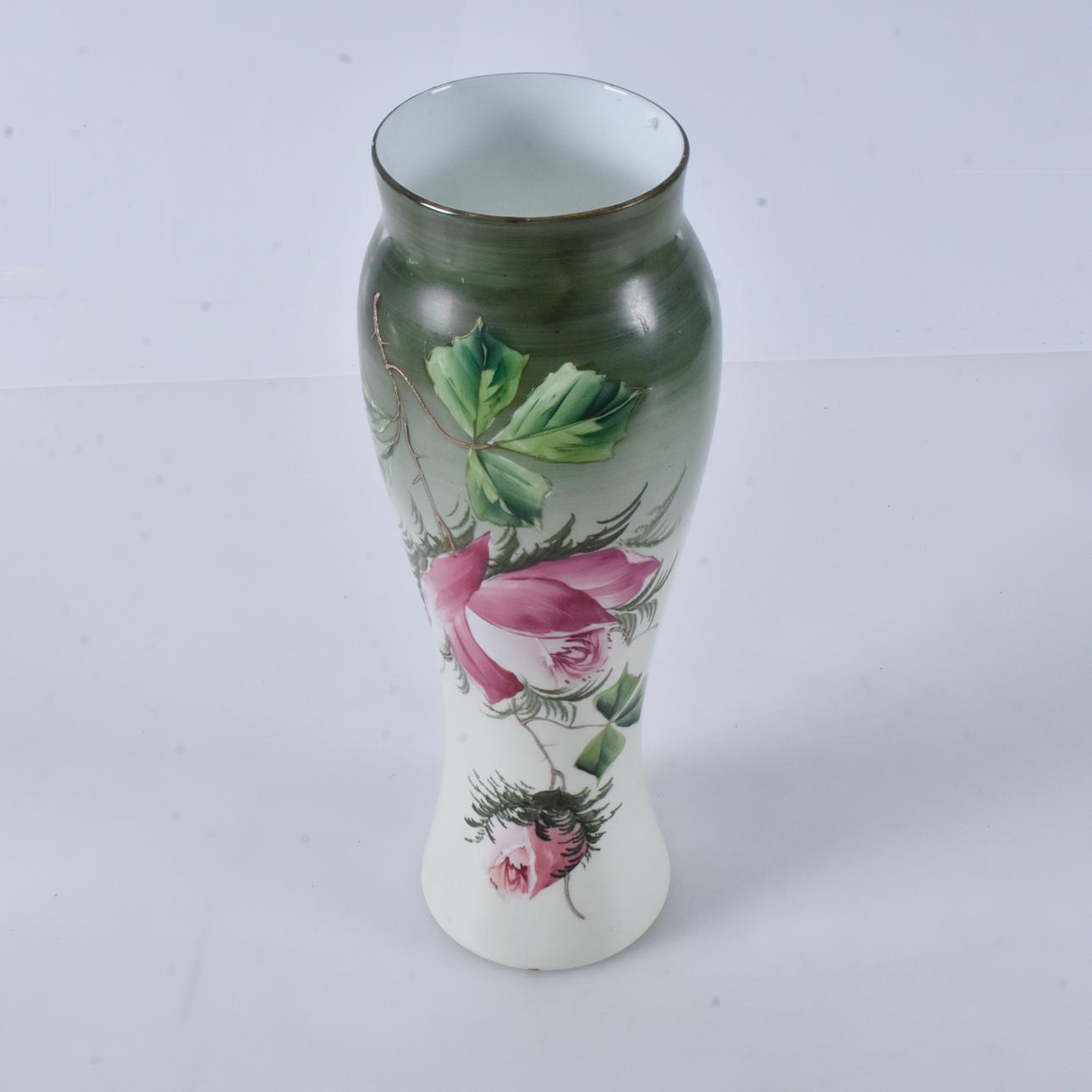 Vase, malet opalglas, omkring århundredeskiftet 1900.