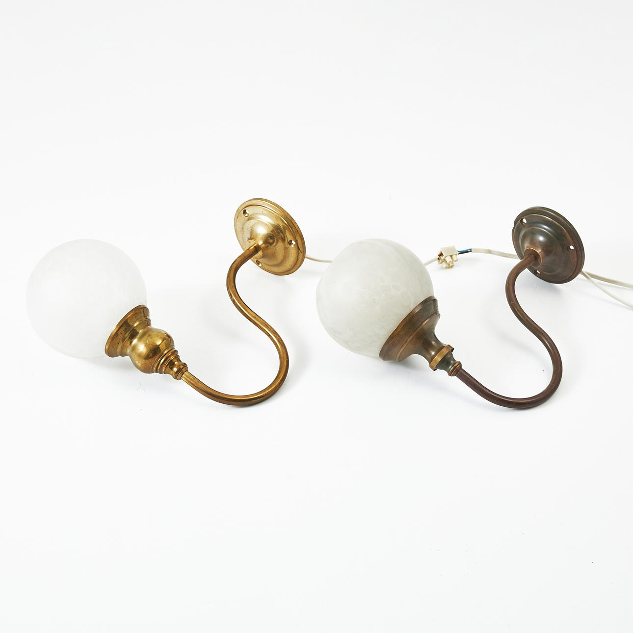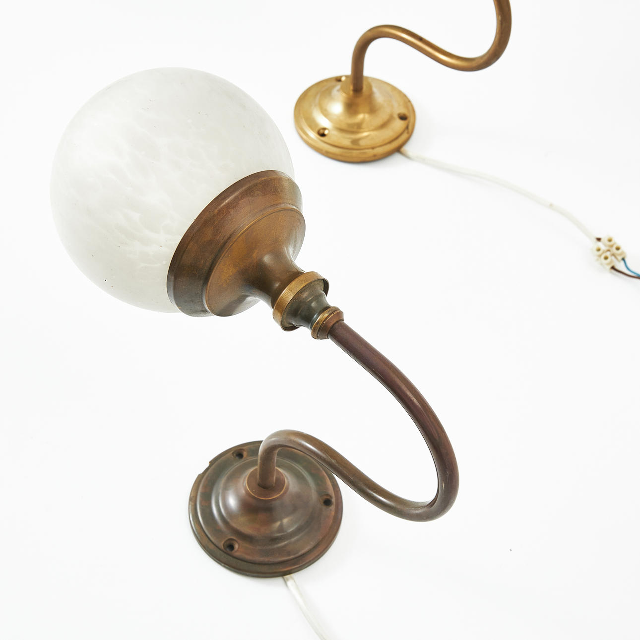 4394842. VÆGLAMPER, 2 lignende, messing, kopper i matteret glas.