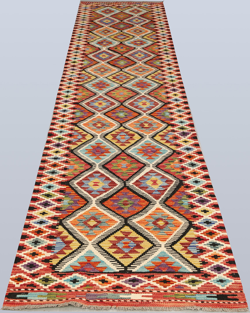 4394906. Kelim tæppe, gallerimodel. Ca. 412 x 78 cm.