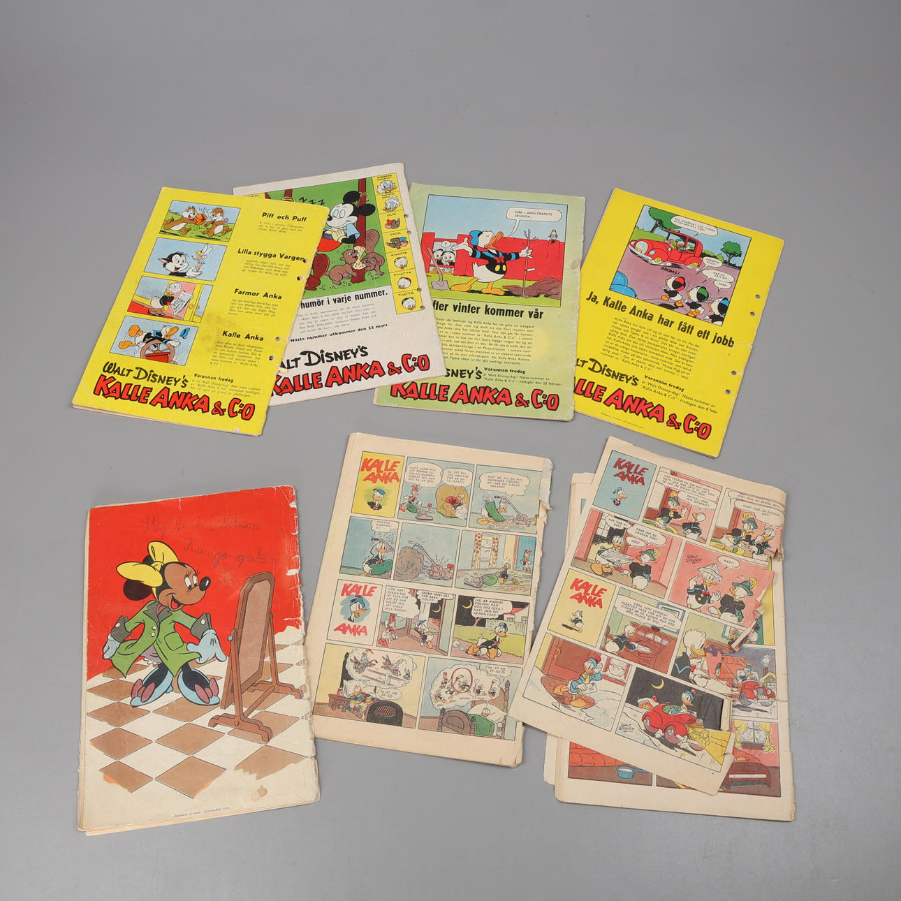 Tegneserierne med skader og to manglende bagsider.