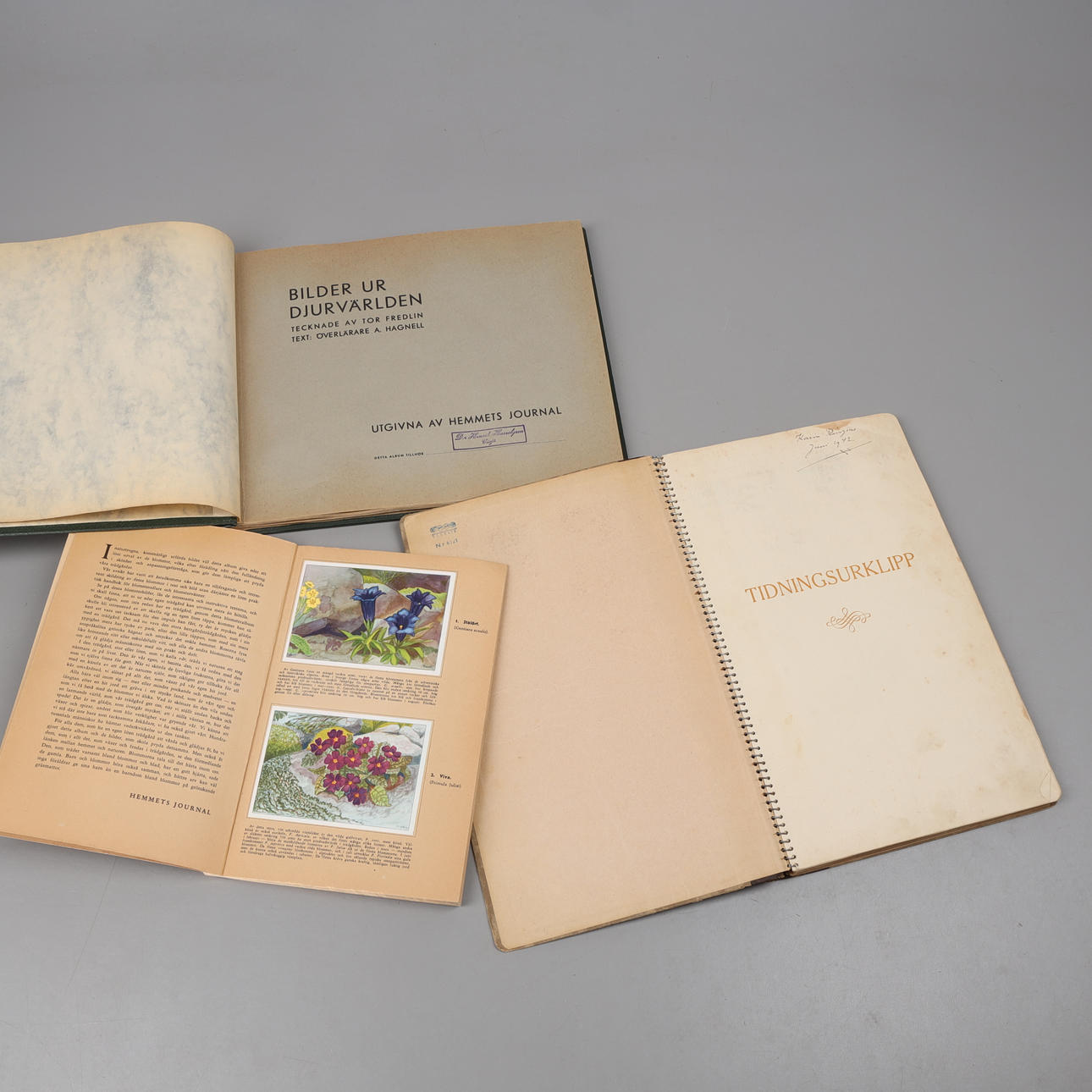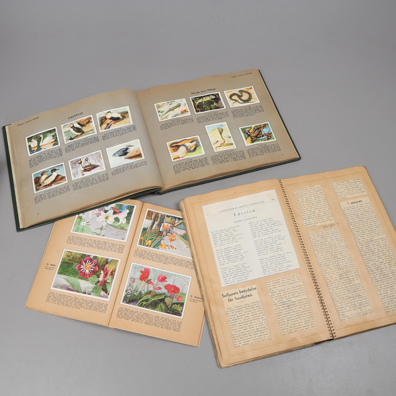 Samleralbum, „Billeder fra Sveriges fauna og flora, Billeder fra dyreverdenen“, komplet med samlerbilleder fra Hemmets Journal, 1935