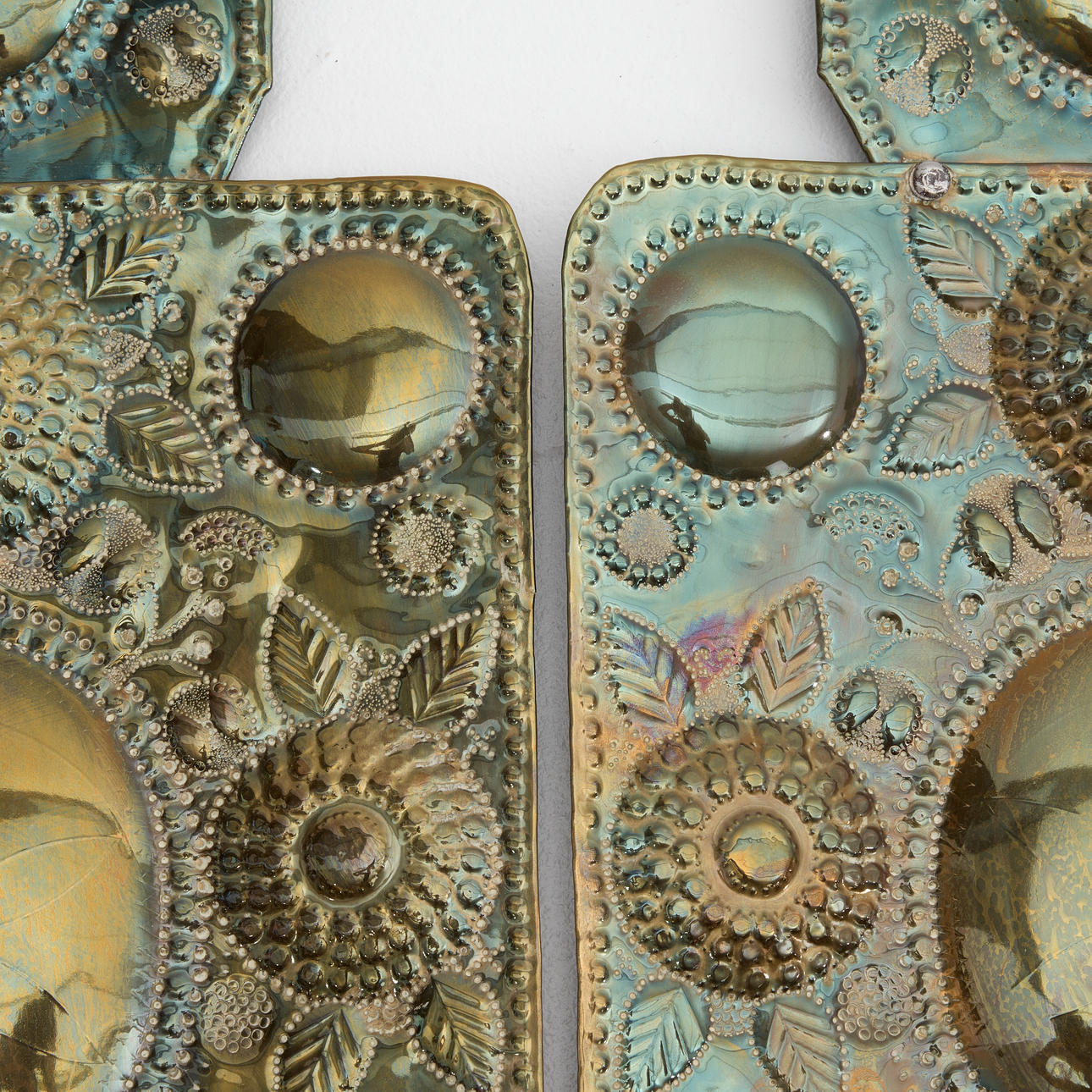 STEARINLYS, et par, barok stil, relieffindretning, messing.