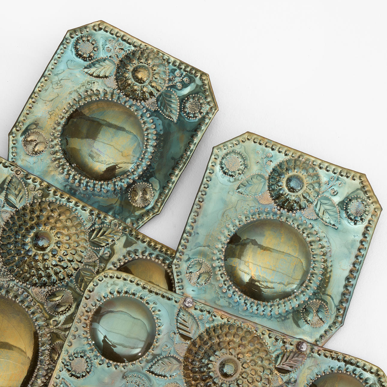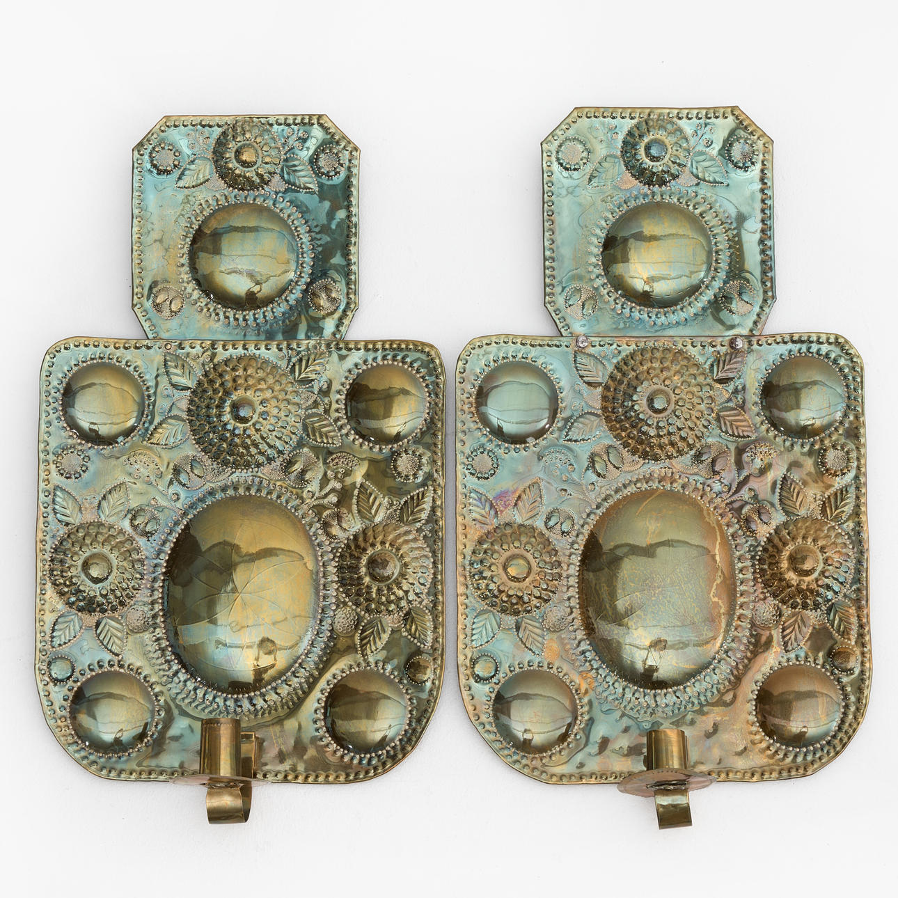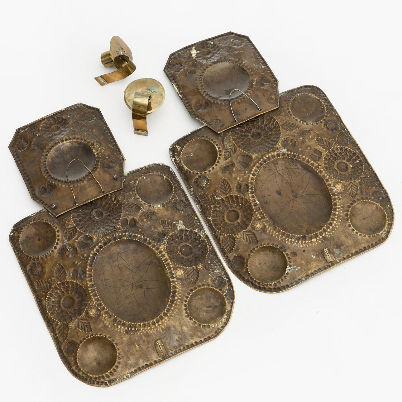 4396111. STEARINLYS, et par, barok stil, relieffindretning, messing.