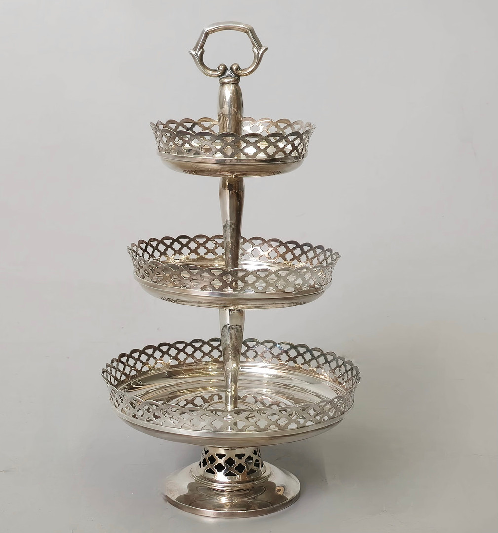 4396467. TRE-ETAGERS FRUGTSKÅL. SØLV.