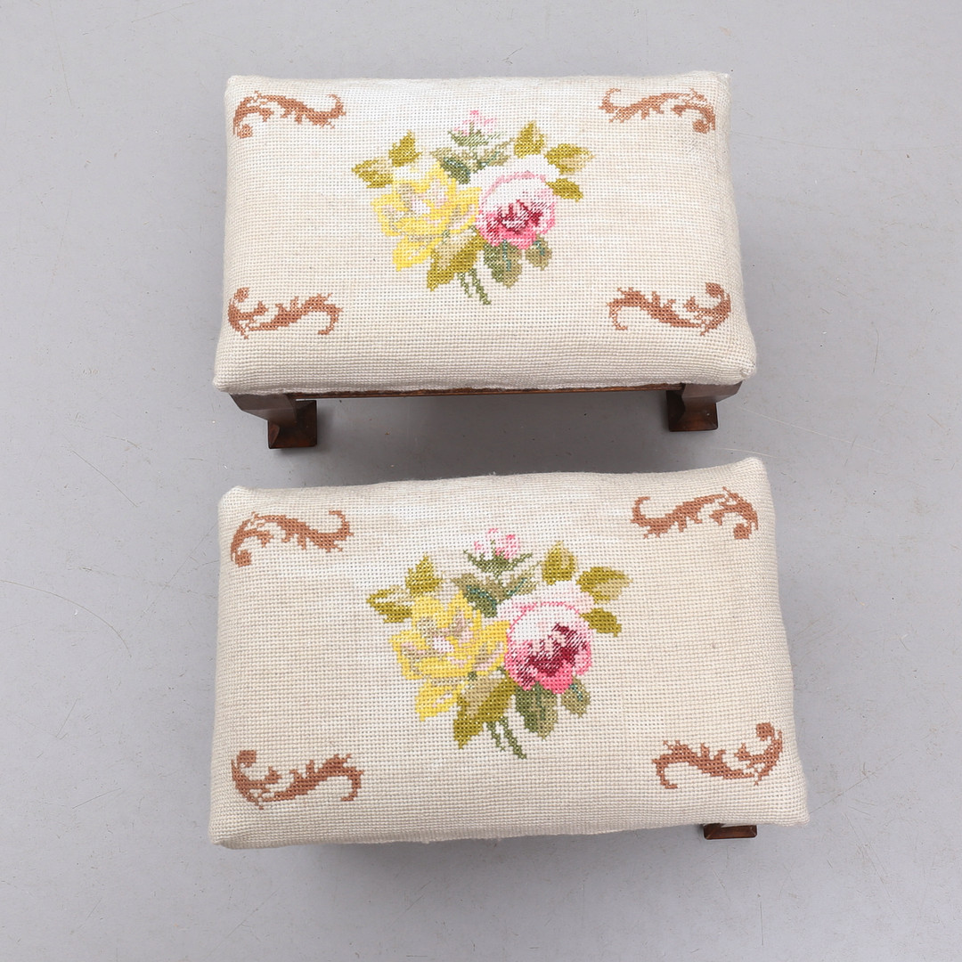 4396699. TABURETTER, et par broderede, 20. årh.