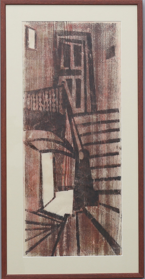 4396726. ERLAND MELANTON. (1916-1968), træsnit, trappe.
